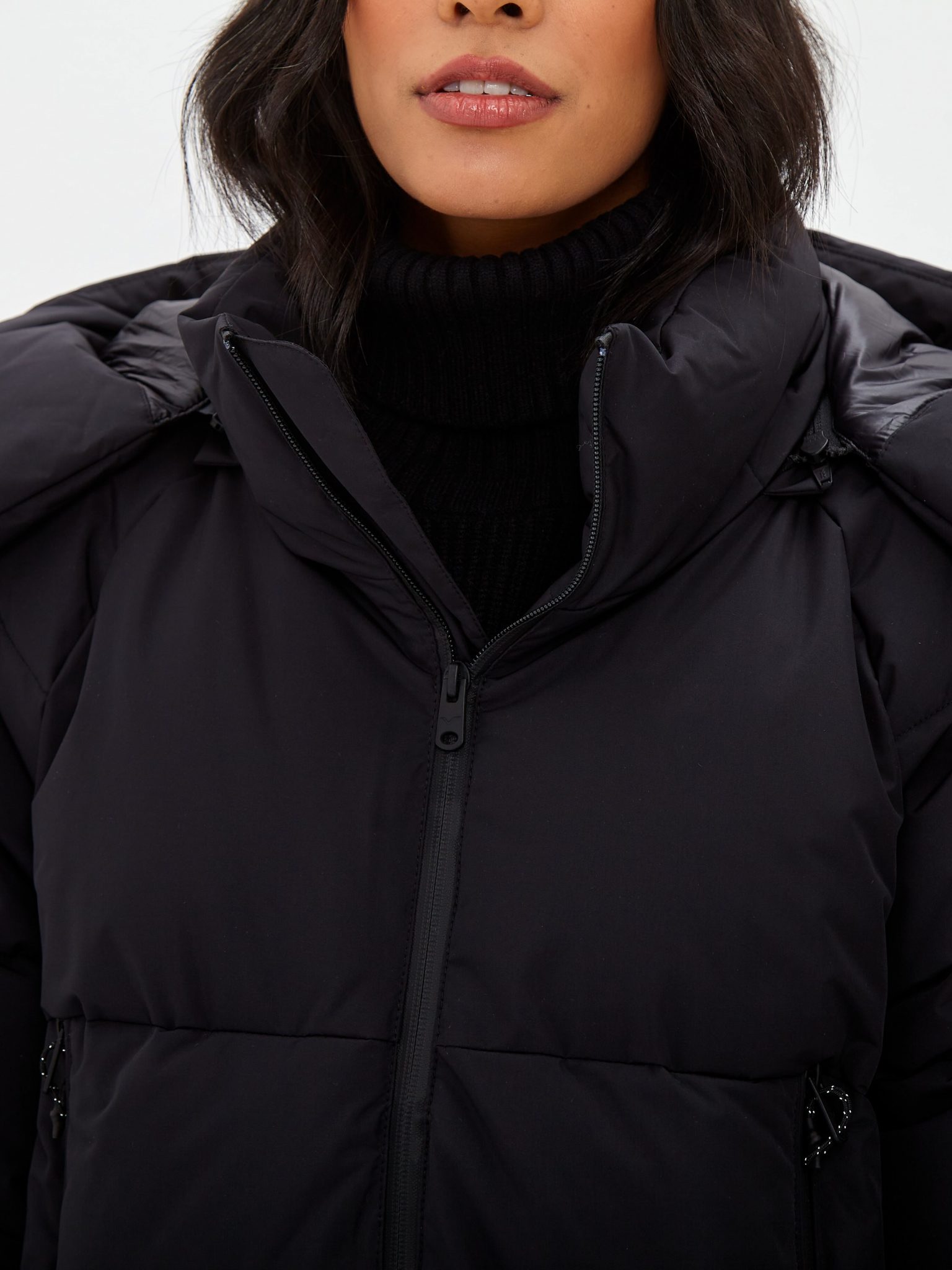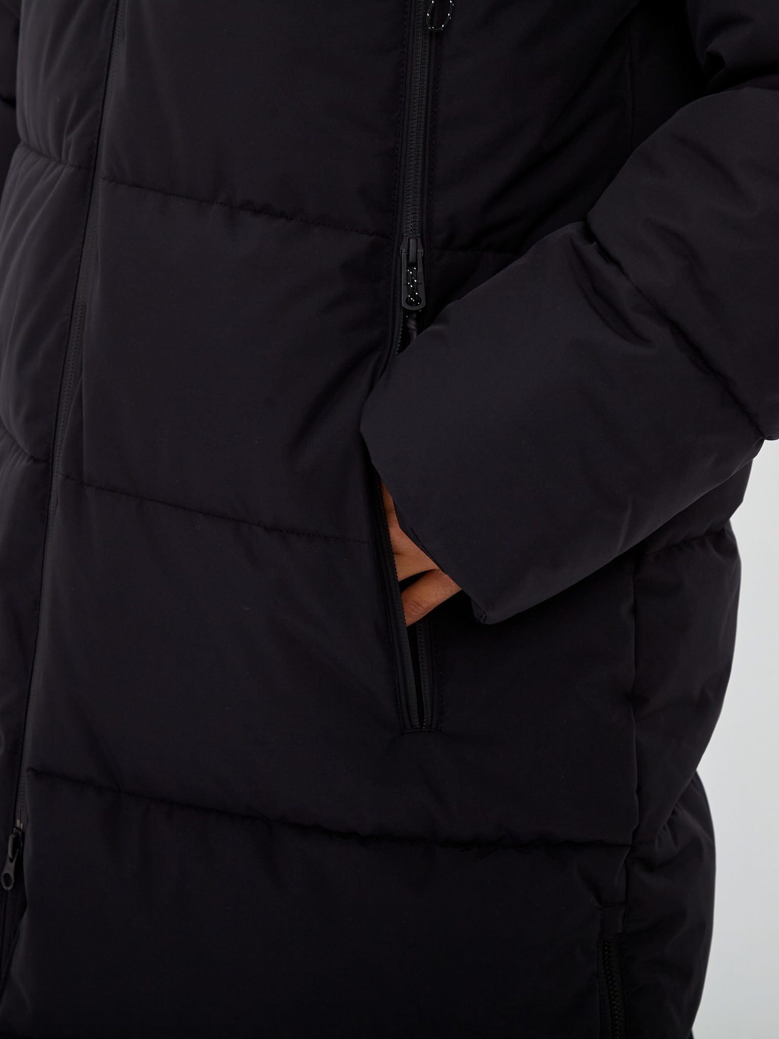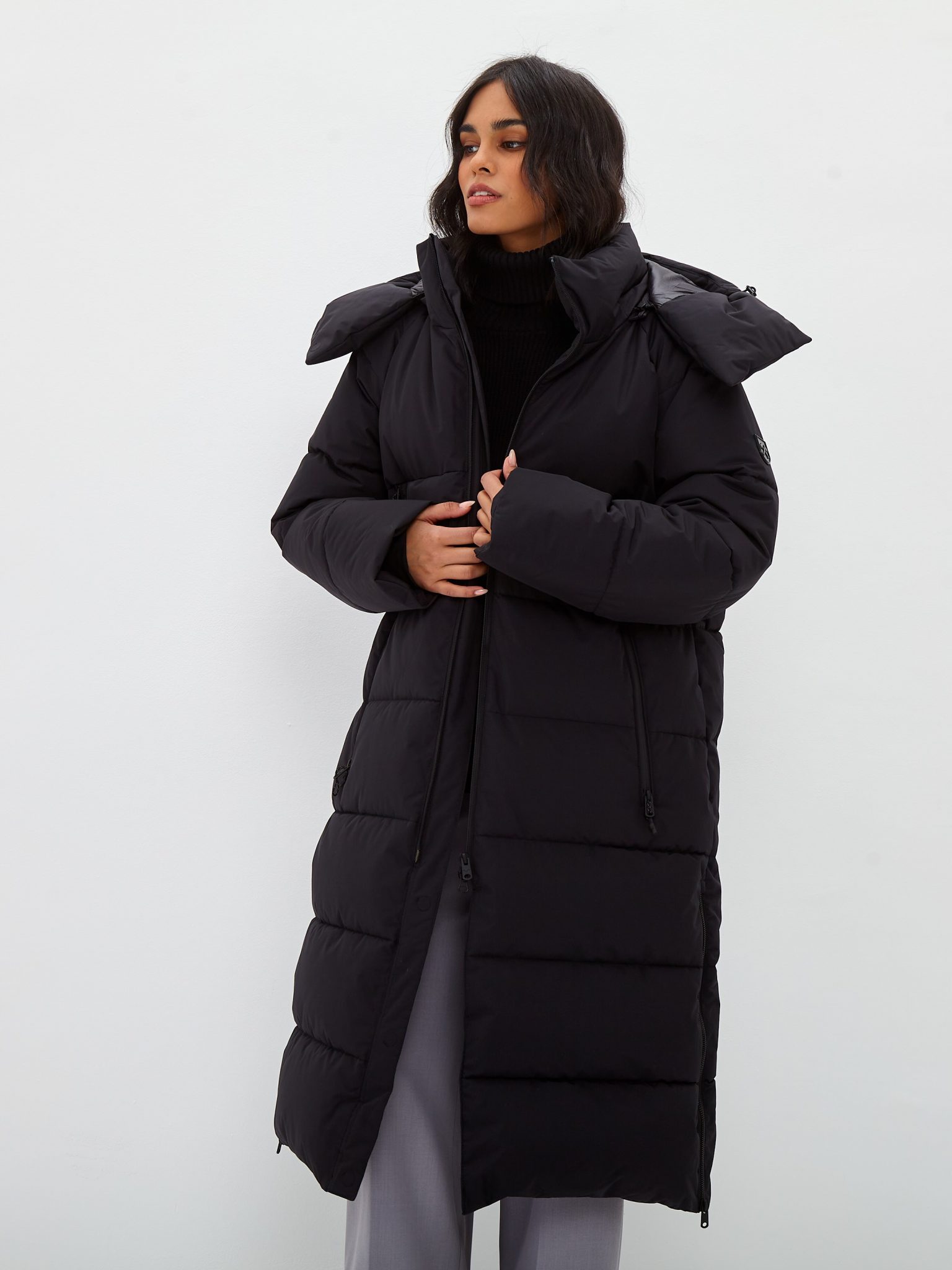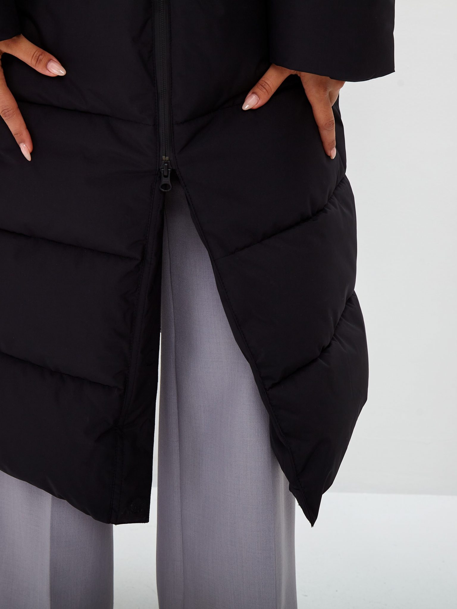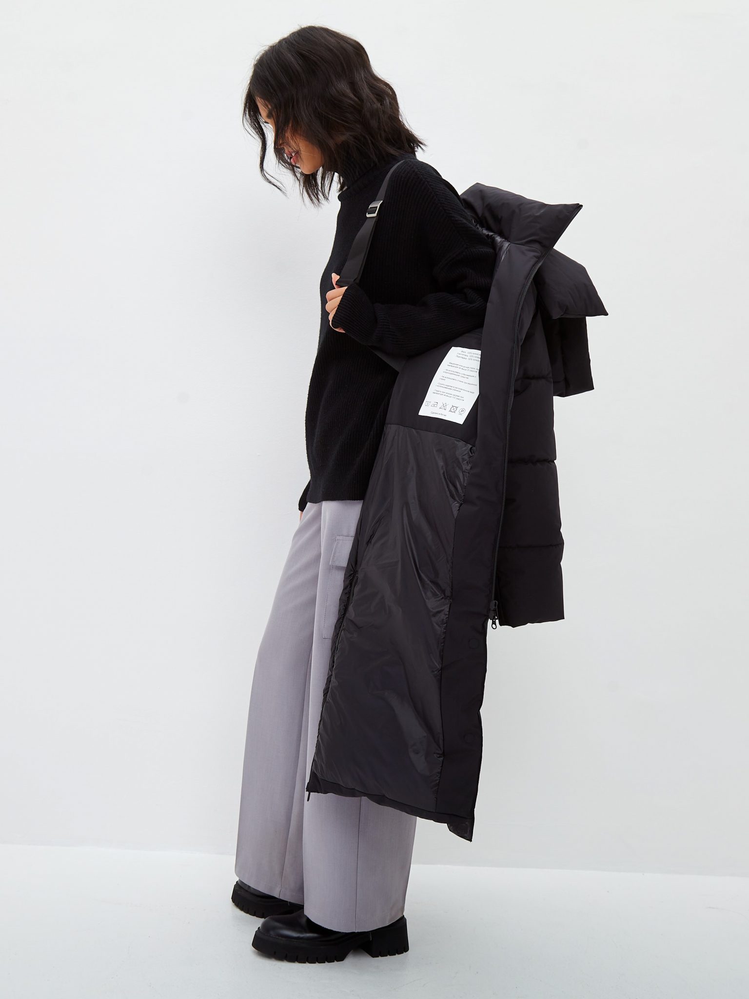 Зимний женский оверсайз пуховик Halli, изготовлен из качественной мембранной ткани с водоотталкивающей пропиткой. Оверсайз крой подарит комфорт и свободу движения – это верхняя одежда, подходящая взрослым женщинам и девушкам – подросткам с любым типом фигуры. Удлиненная куртка с центральной застежкой на двухзамковой молнии производства фирмы YKK с ветрозащитной планкой внутри и магнитами по низу изделия. Съёмный объемный регулируемый капюшон, застёгивающийся на магниты. Высокий объемный воротник надежно защищает от ветра и осадков. Эластичные манжеты рукавов с прорезями под большие пальцы обеспечивают надежное прилегание к руке. Двойные боковые карманы объединены общей молнией. Внутренний нагрудный карман на молнии. Металлический логотип на левом плече дополняет образ. Внутренние стропы для удобства носки куртки за плечами в помещениях. Разрезы в боковых швах, застегивающиеся на молнии, позволяют регулировать степень свободы движения. В качестве утеплителя взят материал био-пух DuPont Sorona – по термоизолирующим характеристикам идентичен натуральному птичьему пуху, но при этом имеет ряд преимуществ, таких как эластичность, негигроскопичность и гипоаллергенность.