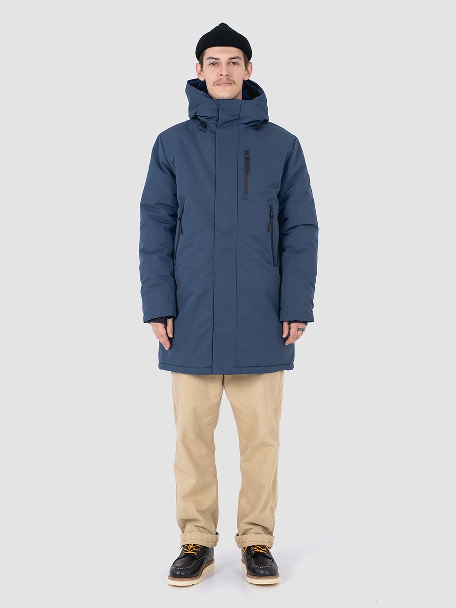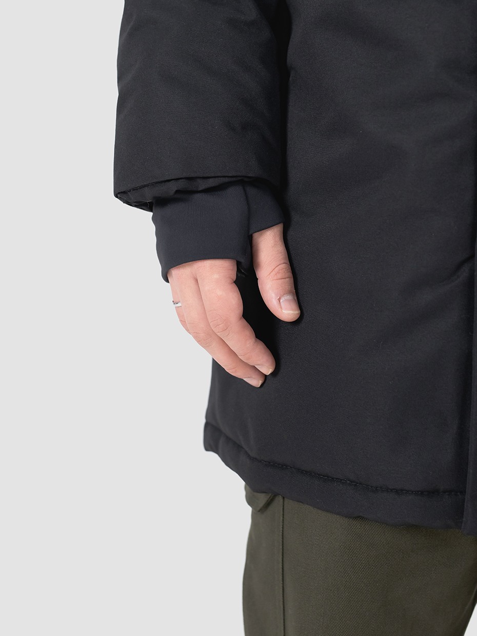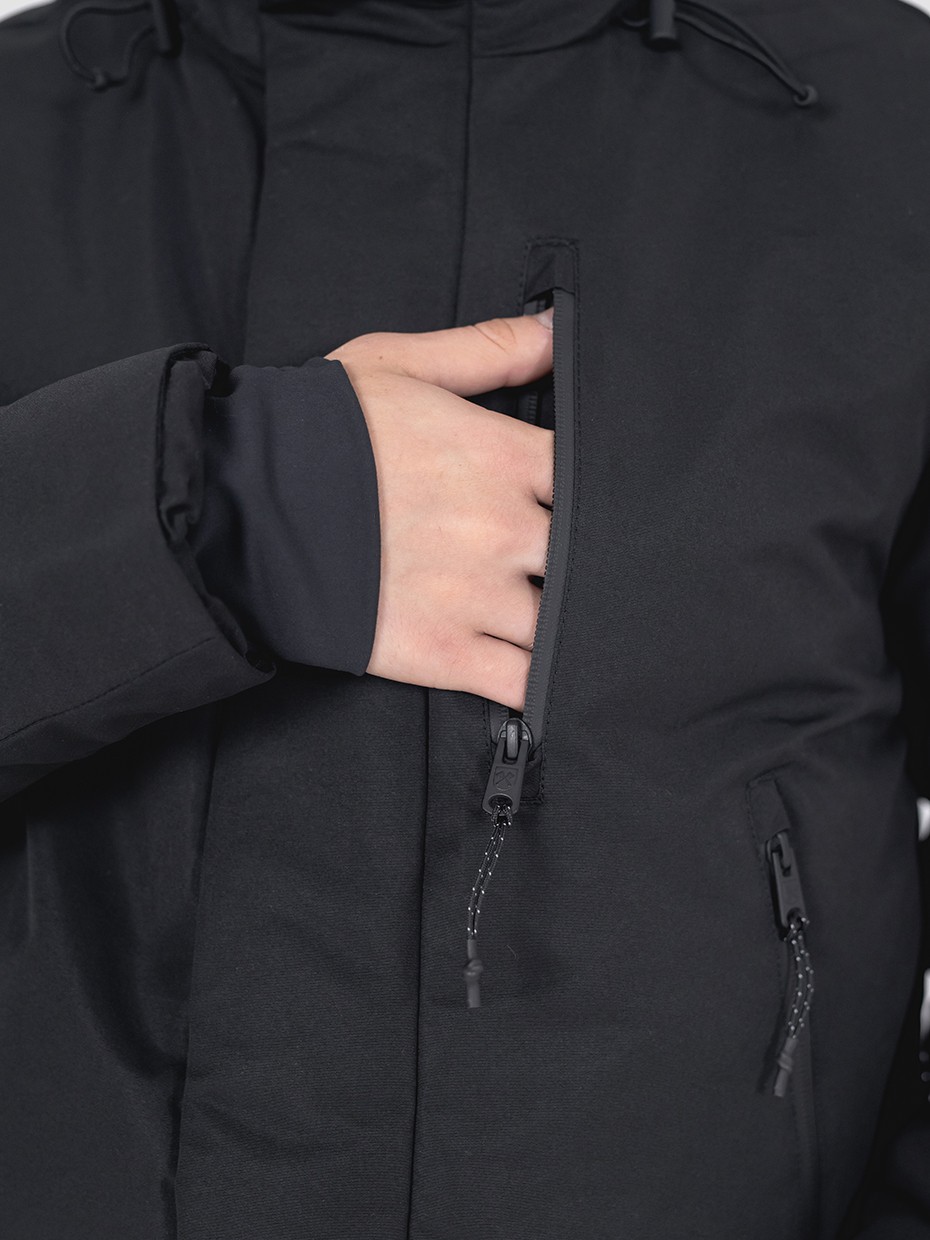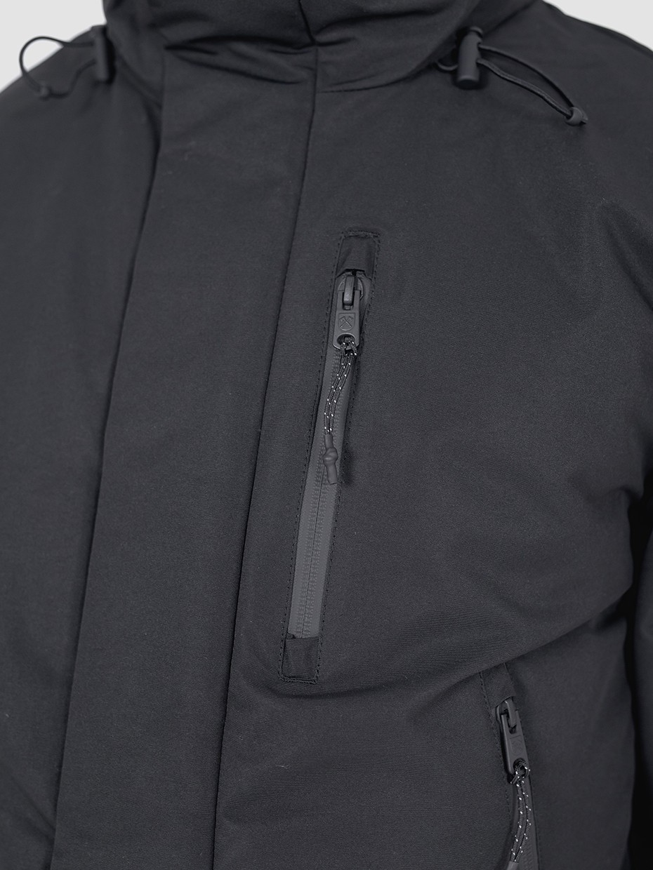 Зимний удлиненный мужской пуховик Kell прямого кроя. Удлиненная куртка с центральной застежкой на двухзамковой молнии производства фирмы YKK с ветрозащитной планкой на магнитных кнопках. Мужская парка отличный вариант верхней одежды для мужчины. Объемный несъемный капюшон регулируется эластичным шнуром с фиксаторами. Высокий объемный воротник надежно защищает от ветра и осадков. Карман на рукаве для карт. Внутренние стропы, для удобства носки куртки за плечами в помещениях. Рукава с внутренними трикотажными манжетами с прорезями под большие пальцы обеспечивают плотное прилегает к руке. Глубокие боковые карманы на водонепроницаемой молнии. Нагрудный карман на водонепроницаемой молнии. Внутренний нагрудный карман на молнии. Металлический логотип на левом плече дополняет образ