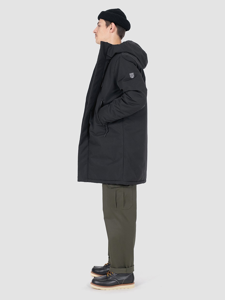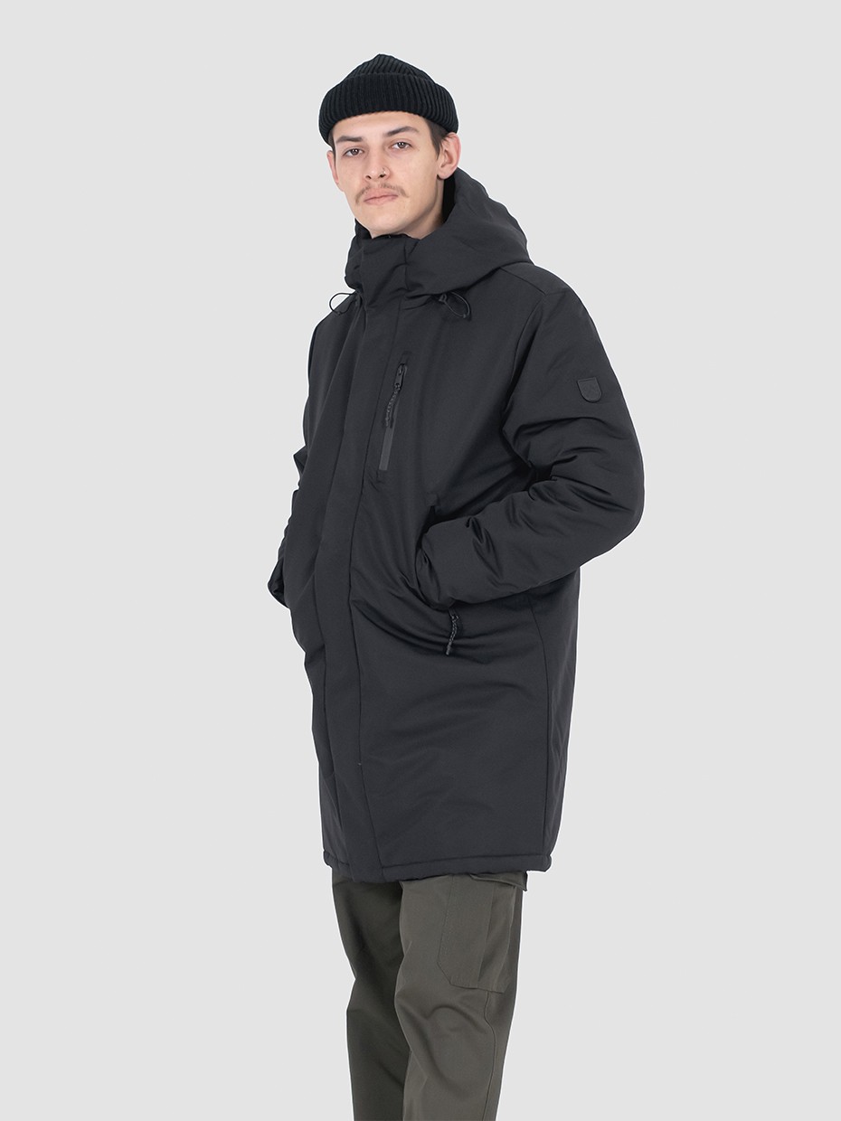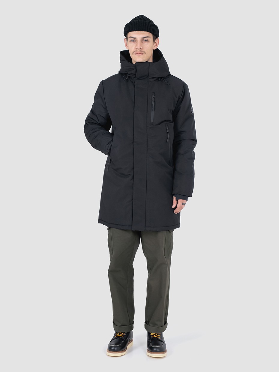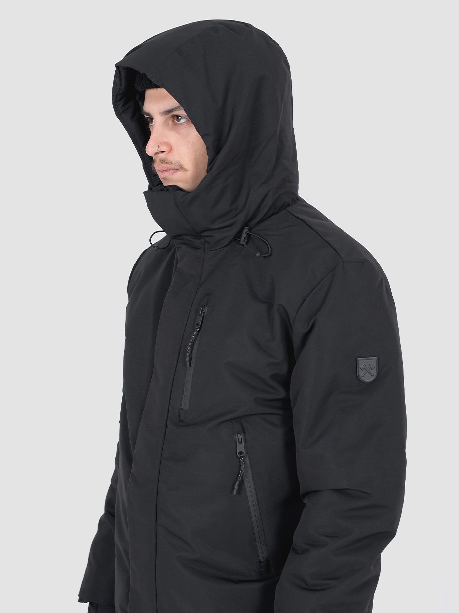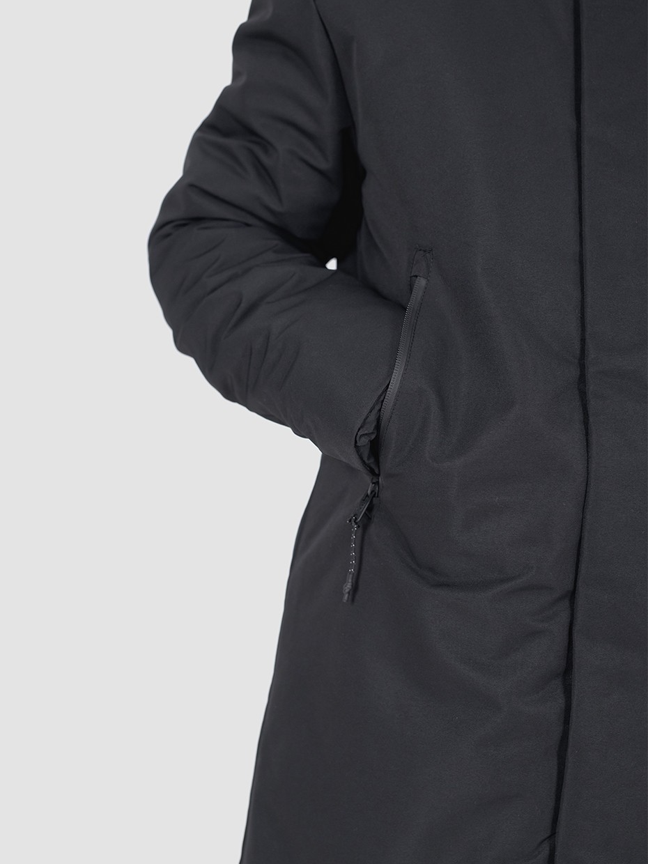 Зимний удлиненный мужской пуховик Kell прямого кроя. Удлиненная куртка с центральной застежкой на двухзамковой молнии производства фирмы YKK с ветрозащитной планкой на магнитных кнопках. Мужская парка отличный вариант верхней одежды для мужчины. Объемный несъемный капюшон регулируется эластичным шнуром с фиксаторами. Высокий объемный воротник надежно защищает от ветра и осадков. Карман на рукаве для карт. Внутренние стропы, для удобства носки куртки за плечами в помещениях. Рукава с внутренними трикотажными манжетами с прорезями под большие пальцы обеспечивают плотное прилегает к руке. Глубокие боковые карманы на водонепроницаемой молнии. Нагрудный карман на водонепроницаемой молнии. Внутренний нагрудный карман на молнии. Металлический логотип на левом плече дополняет образ