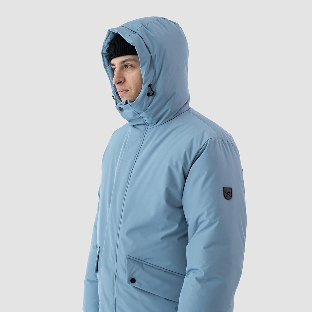 Длинный зимний мужской пуховик Kodar прямого кроя с водоотталкивающей пропиткой. Удлиненная куртка с центральной застежкой на двухзамковой молнии производства фирмы YKK с ветрозащитной планкой на магнитах. Объемный несъемный капюшон регулируется эластичным шнуром с фиксаторами. Объем капюшона регулируется молнией внутри. Высокий воротник надежно защищает от ветра и осадков. Эластичные манжеты рукавов с прорезями под большие пальцы обеспечивают надежное прилегание к руке. Два боковых кармана с клапанами. Дополнительный боковой кар на молнии под клапаном. Пуховик дополнен внутренним карманам на молнии для документов и мелких вещей. Внутренние стропы, для удобства носки куртки за плечами в помещениях. Брендированный логотип на левом рукаве. Куртка выполнена из ткани мембрана – качественная курточная ткань с мембранной отделкой с водоупорностью до 5000 мм и паропроницаемостью до 5000 г/м2/24 часа. Ткани с такой обработкой надежно защищают от воды и снега.
