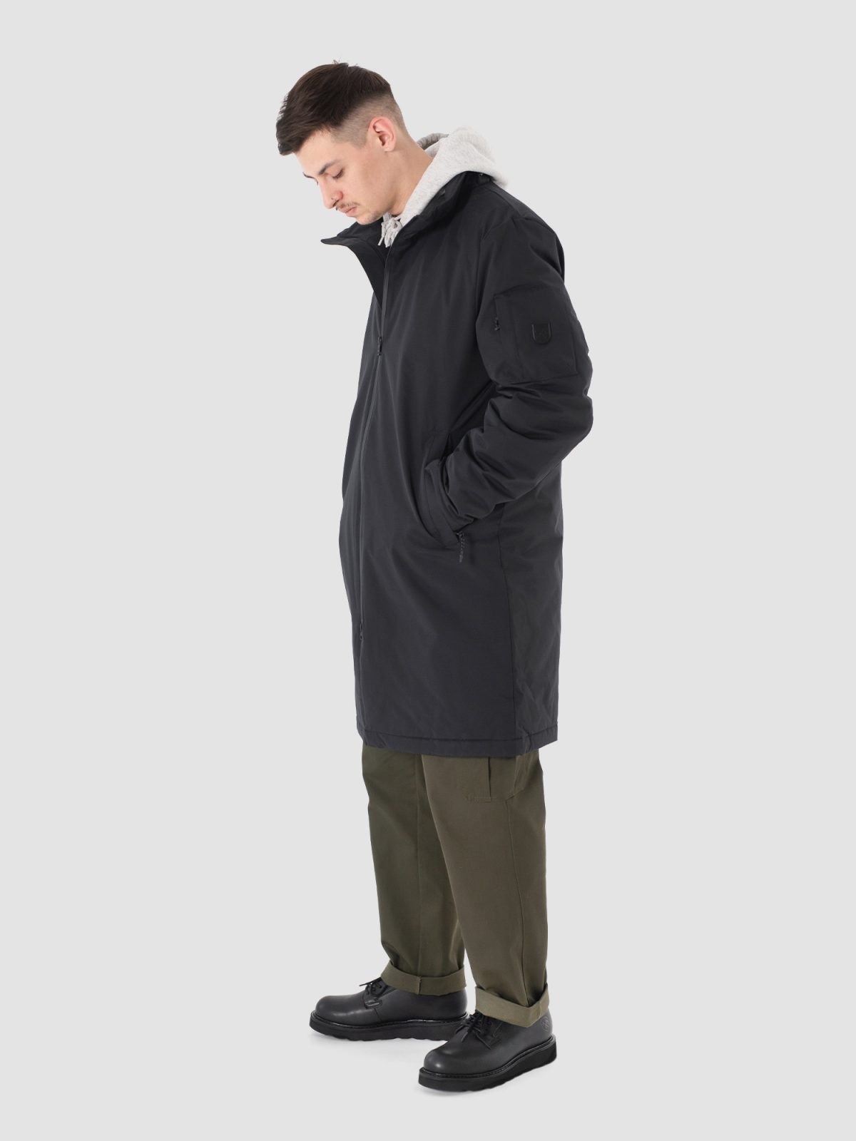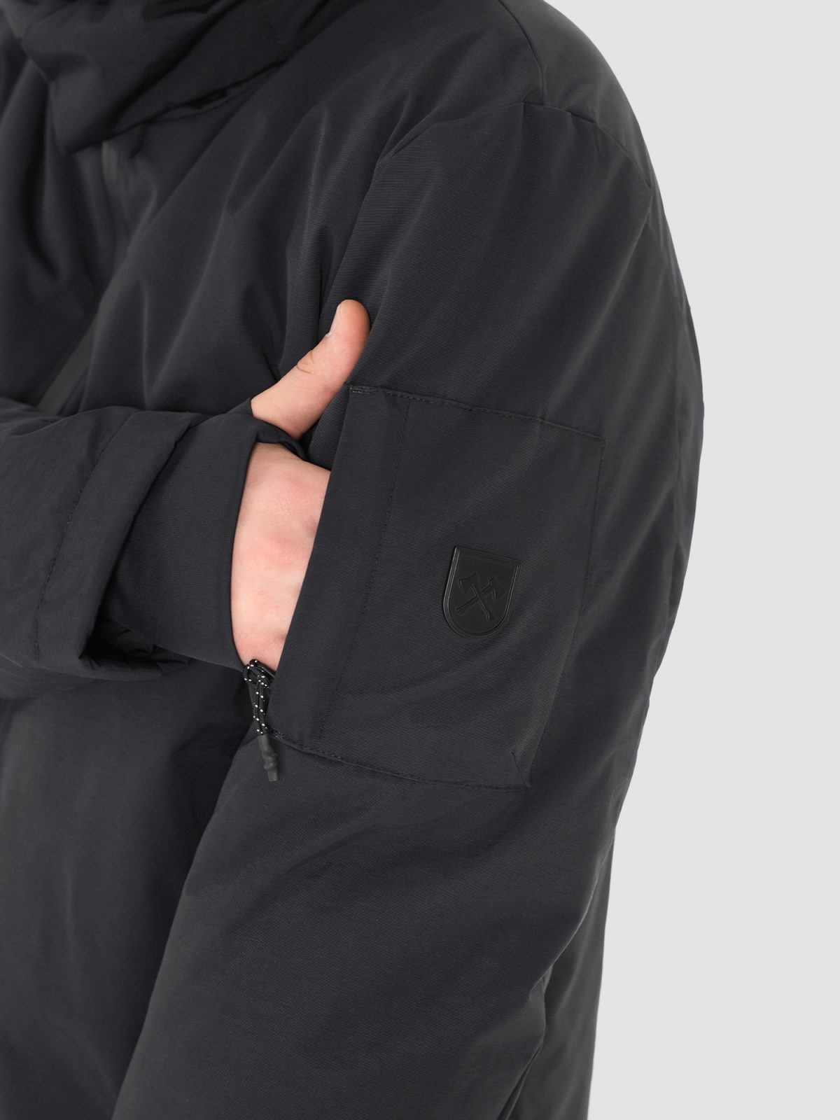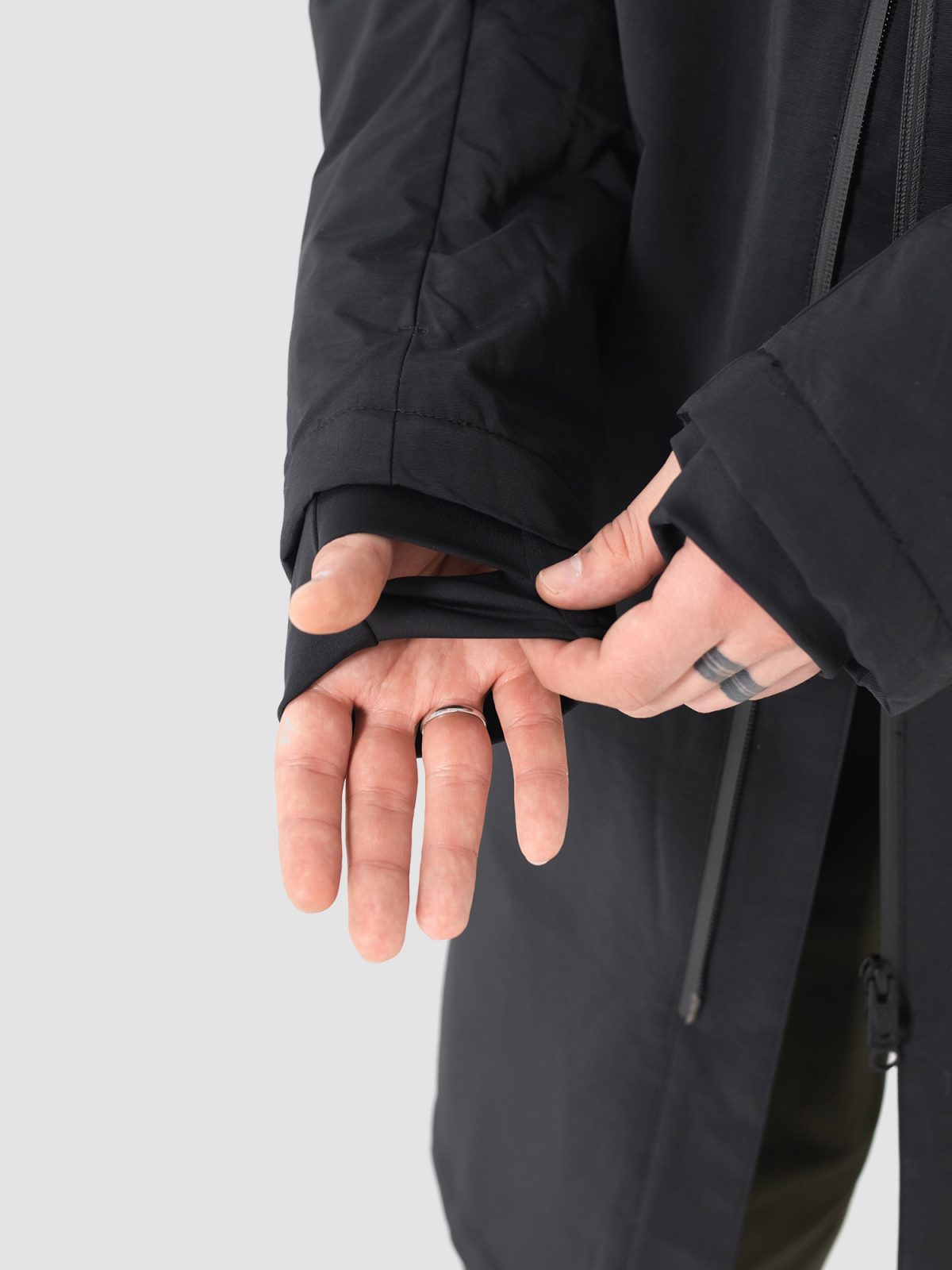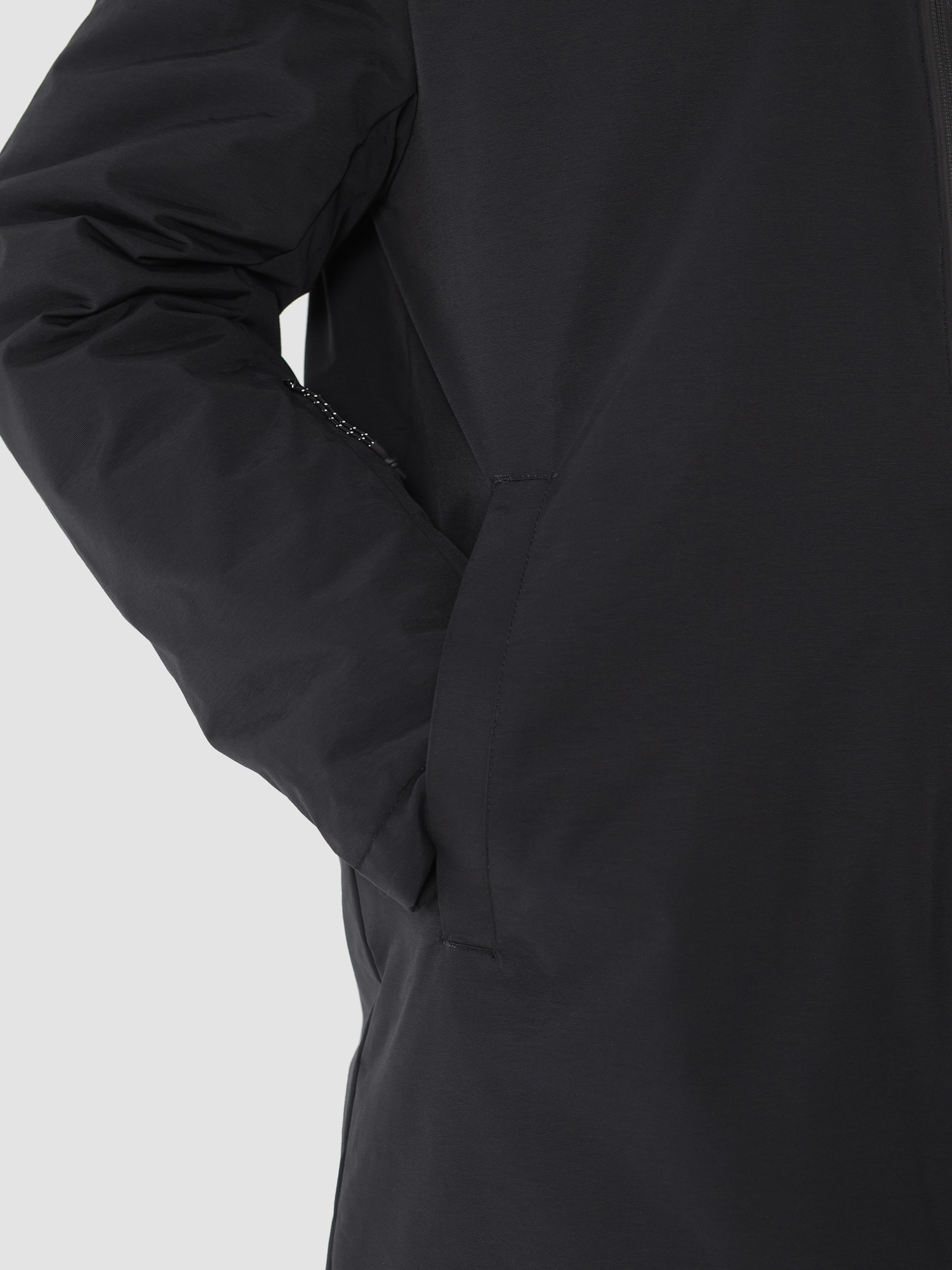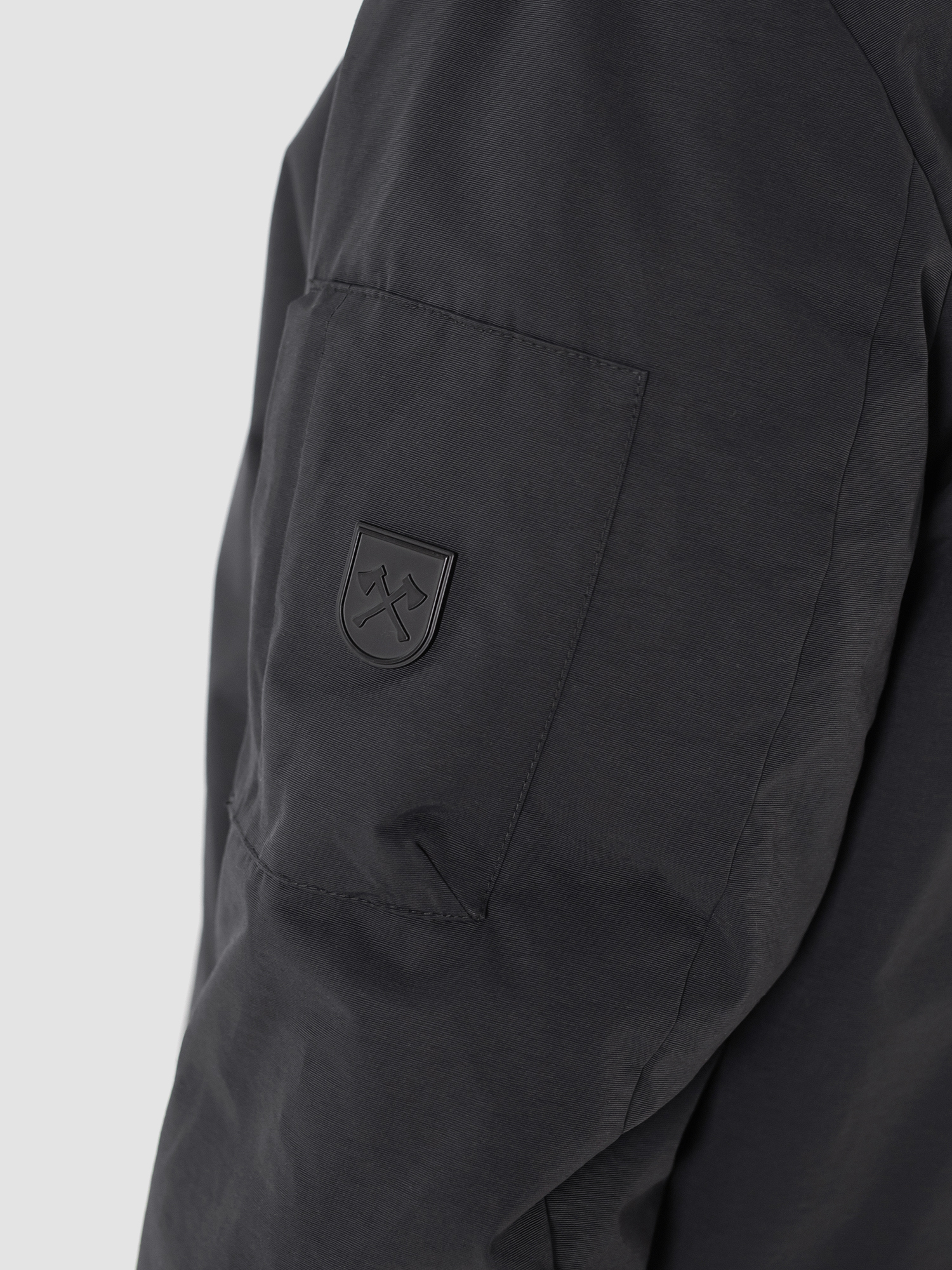 Утепленная мужская куртка Kotlin прямого кроя с центральной застежкой на двухзамковой молнии производства фирмы YKK и внутренней ветрозащитной планкой. Съемный регулируемый капюшон. Высокий воротник надежно защищает от ветра и осадков. Рукава с внутренними трикотажными манжетами с прорезями под большие пальцы обеспечивают плотное прилегание к руке. Глубокие боковые карманы на водонепроницаемой молнии и один карман на молнии на левом рукаве. Потайной карман на правом рукаве. Внутренний карман на молнии. Металлический логотип на левом плече дополняет образ. Длинная куртка выполнена из ткани “мембрана” — качественная курточная ткань с мембранной отделкой с водоупорностью до 5000 мм и паропроницаемостью до 5000 г/м2/24 ч. Ткани с такой обработкой надежно защищают от воды и снега. В качестве утеплителя взят материал биопух DuPont Sorona: по термоизолирующим характеристикам идентичен натуральному птичьему пуху, но при этом имеет ряд преимуществ, таких как эластичность, негигроскопичность и гипоаллергенность.