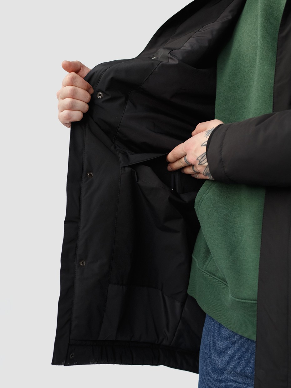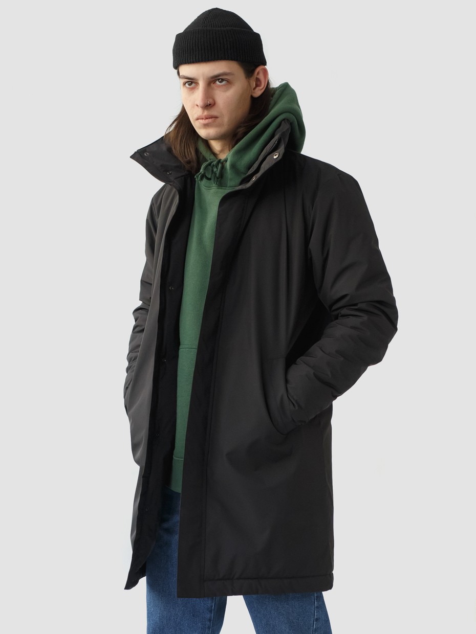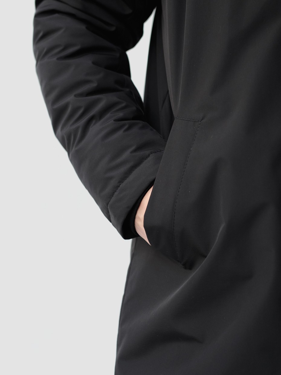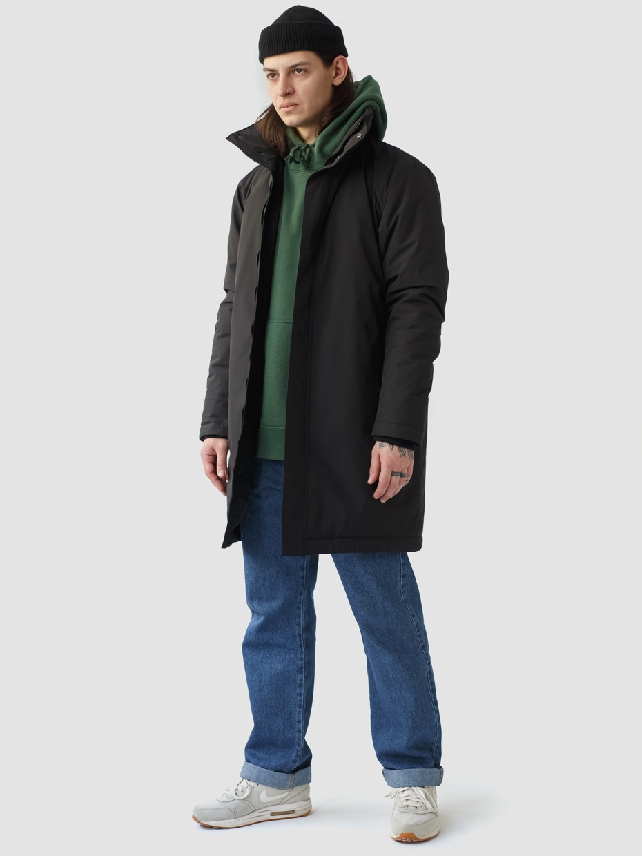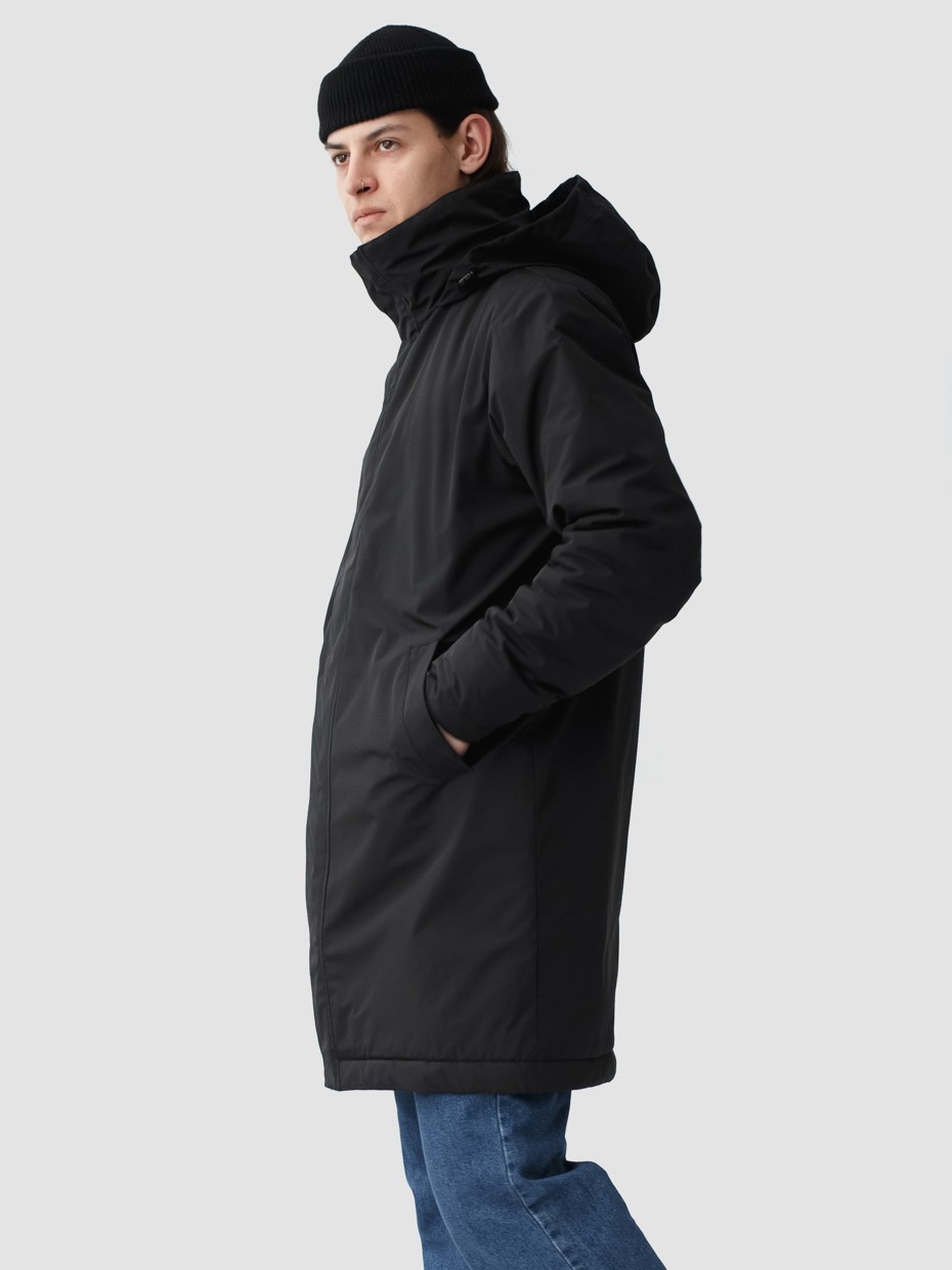 Удлиненная демисезонная куртка Lars прямого силуэта c плотный слоем искусcтвенного утеплителя – ФАЙБЕРТЕК™. Это нетканый материал, представляющий собой объемный слой из композиции тонких пустотелых волокон с элементами объемного термоскрепления. Куртка выполнена из ткани мембрана – качественная курточная ткань с мембранной отделкой TPU с водоупорностью до 3000 мм. Ткани с такой обработкой надежно защищают от воды и снега. Для дополнительной влагозащиты центральная двухзамковая молния закрывается планкой на кнопках. Утепленный капюшон прячется в воротник стойку. Капюшон регулируется эластичным шнуром с металлическими фиксаторами. Его можно убрать в воротник-стойку, которая закрывается на кнопки. Два наружных врезных кармана и два внутренних. Манжеты внутри рукавов обеспечивают плотное прилегание к запястью и защиту от ветра.