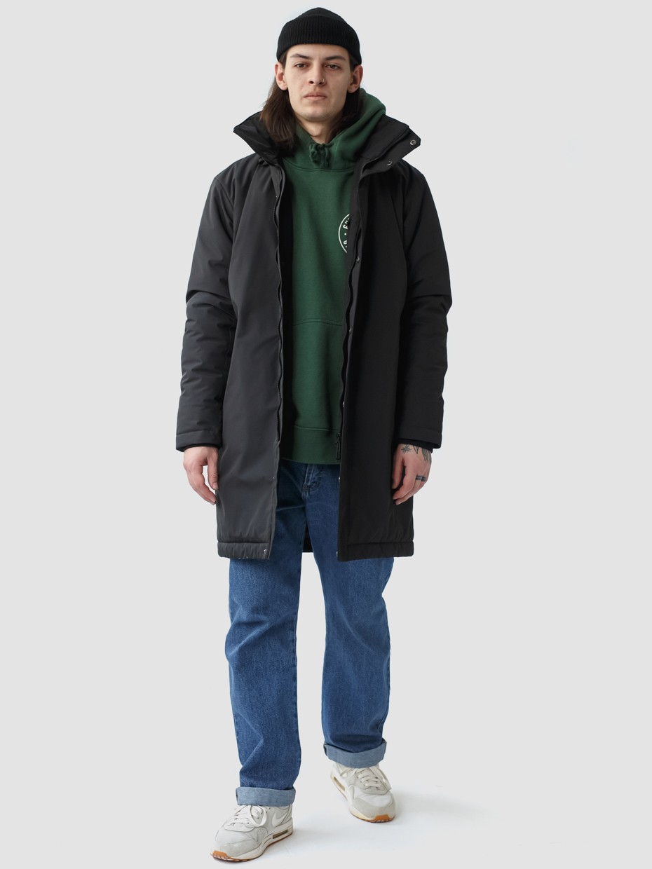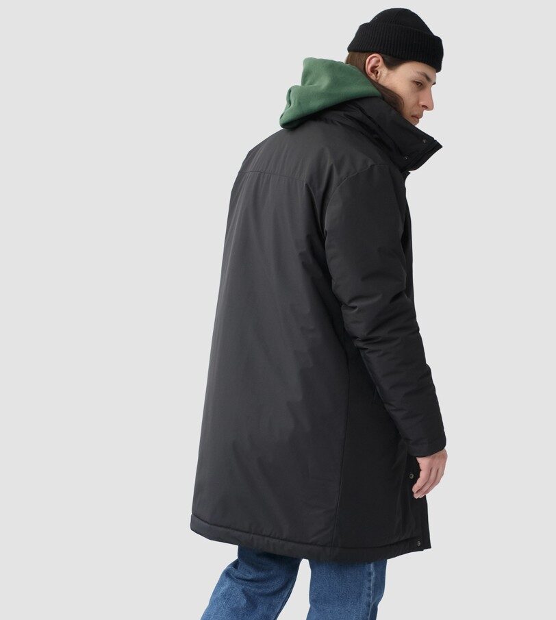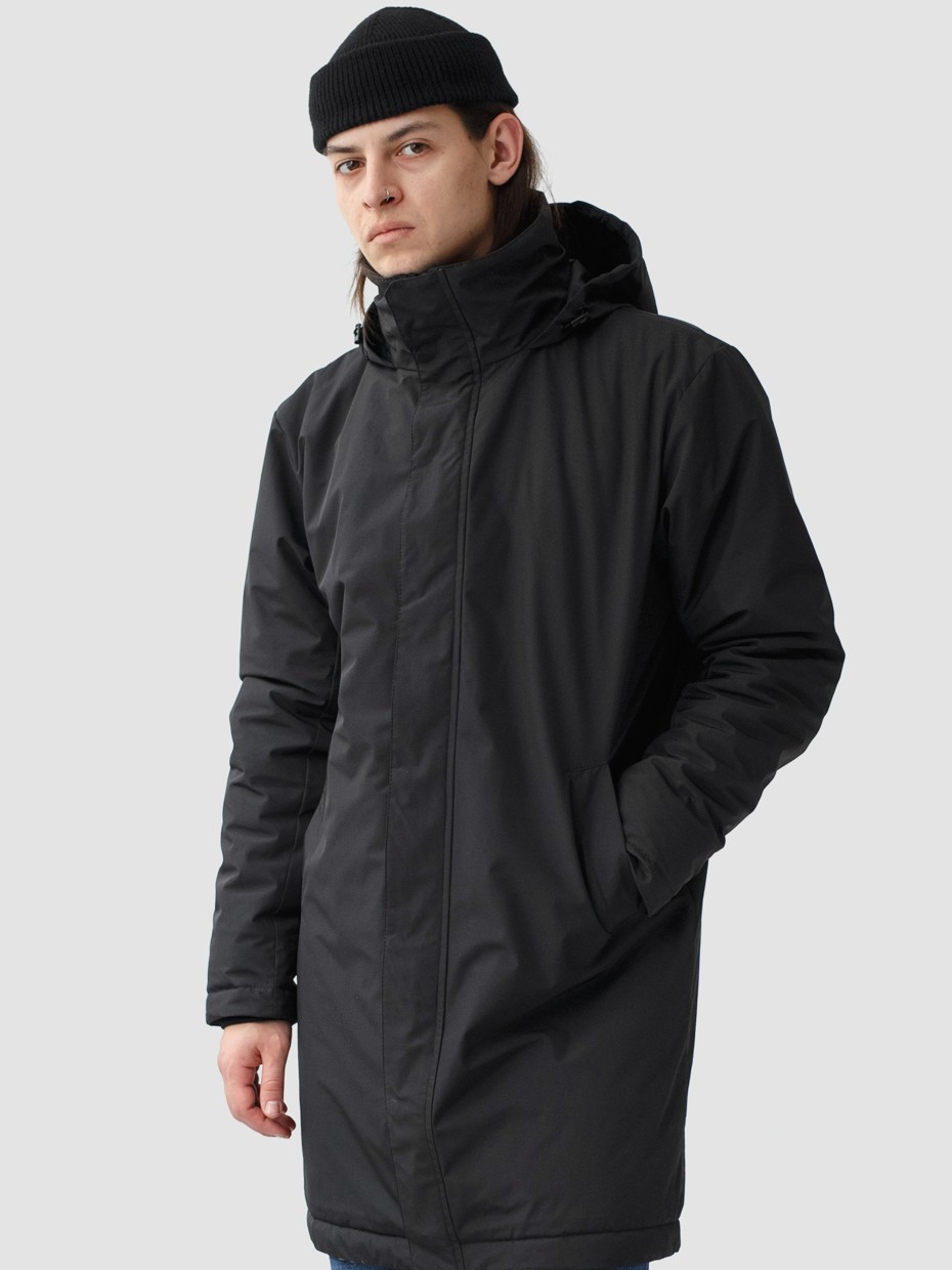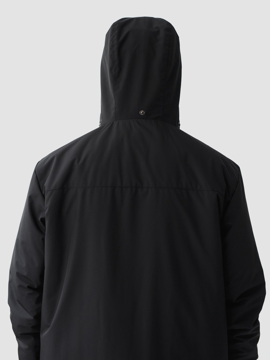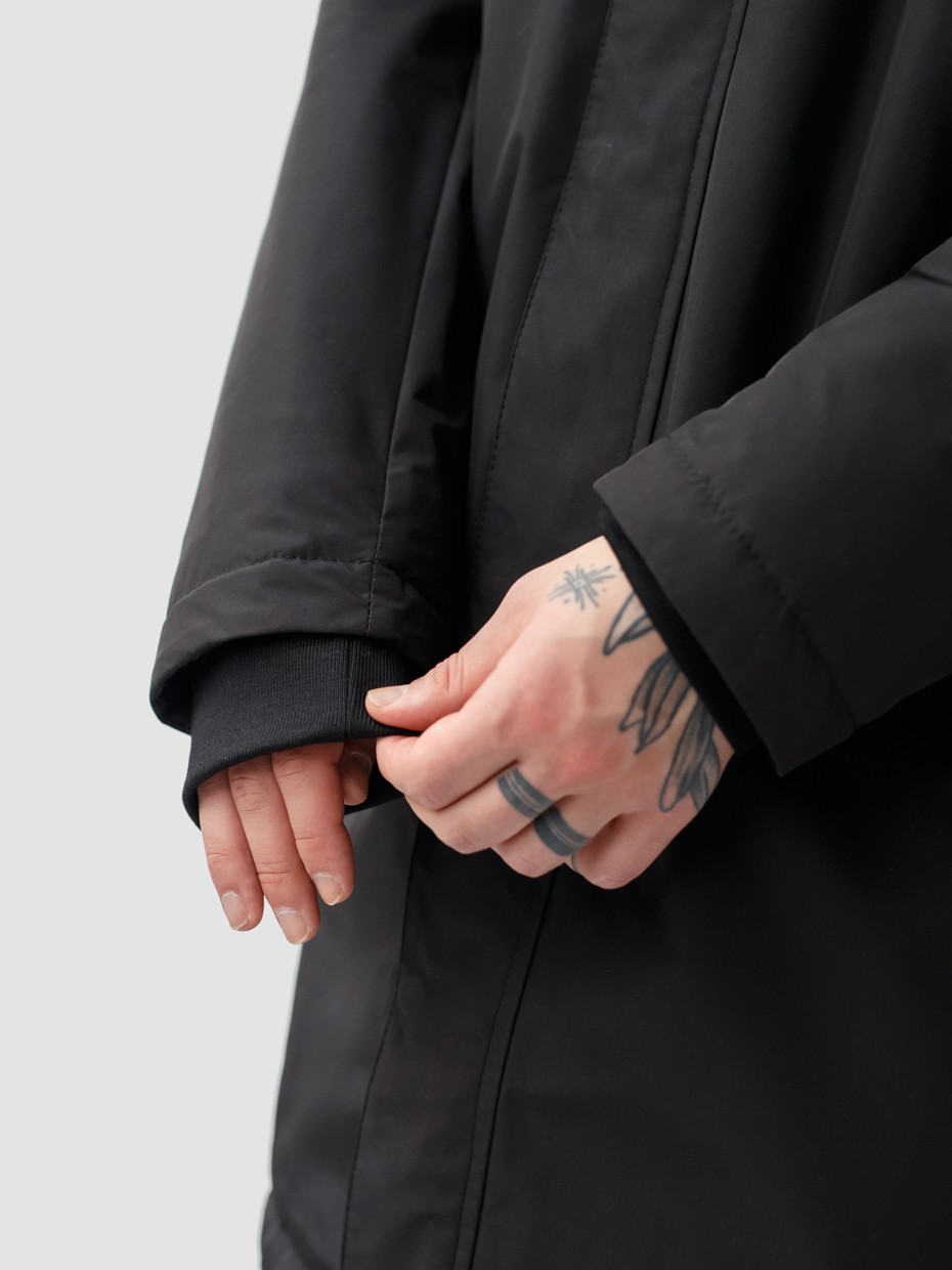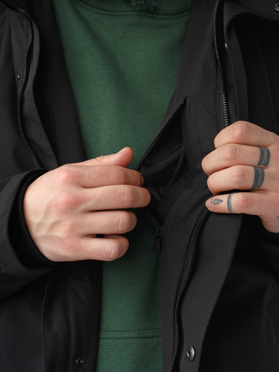 Удлиненная демисезонная куртка Lars прямого силуэта c плотный слоем искусcтвенного утеплителя – ФАЙБЕРТЕК™. Это нетканый материал, представляющий собой объемный слой из композиции тонких пустотелых волокон с элементами объемного термоскрепления. Куртка выполнена из ткани мембрана – качественная курточная ткань с мембранной отделкой TPU с водоупорностью до 3000 мм. Ткани с такой обработкой надежно защищают от воды и снега. Для дополнительной влагозащиты центральная двухзамковая молния закрывается планкой на кнопках. Утепленный капюшон прячется в воротник стойку. Капюшон регулируется эластичным шнуром с металлическими фиксаторами. Его можно убрать в воротник-стойку, которая закрывается на кнопки. Два наружных врезных кармана и два внутренних. Манжеты внутри рукавов обеспечивают плотное прилегание к запястью и защиту от ветра.