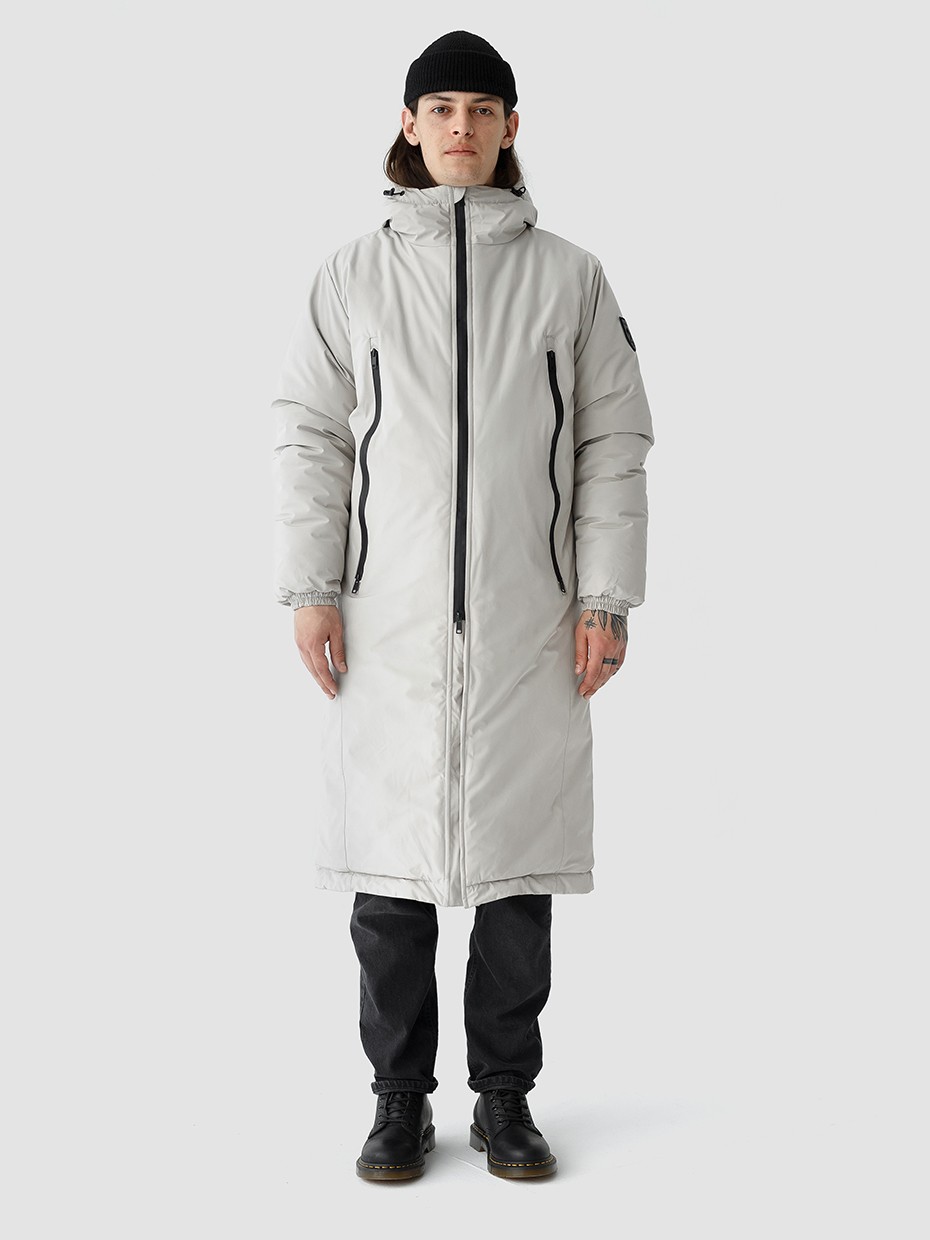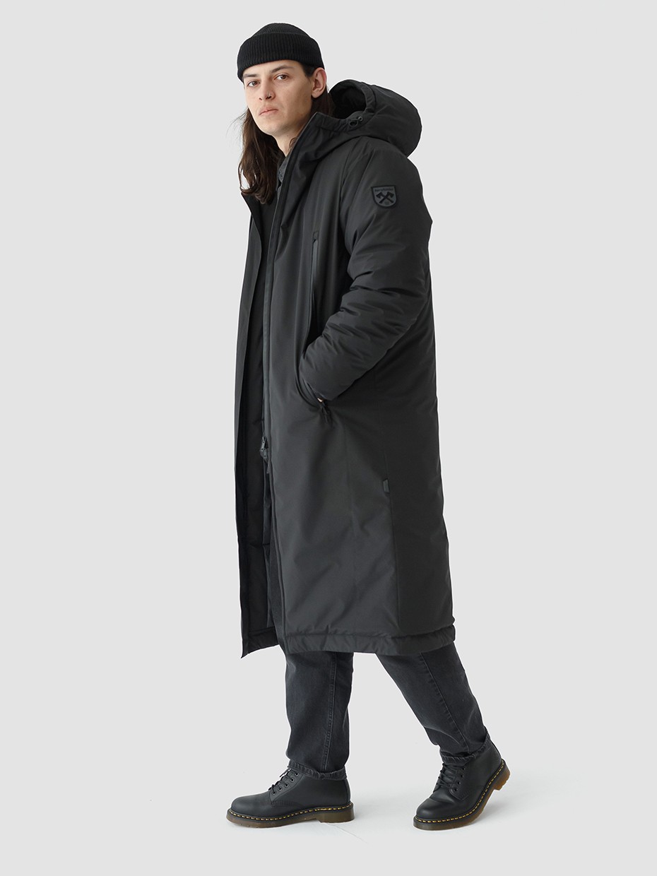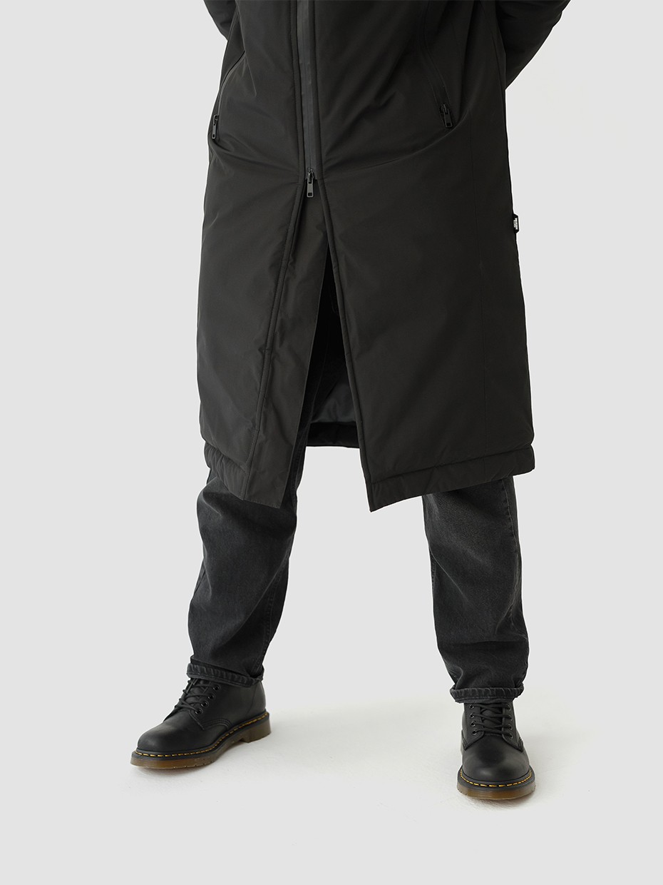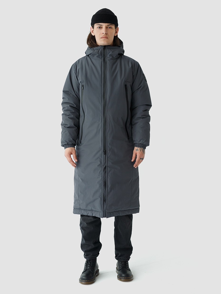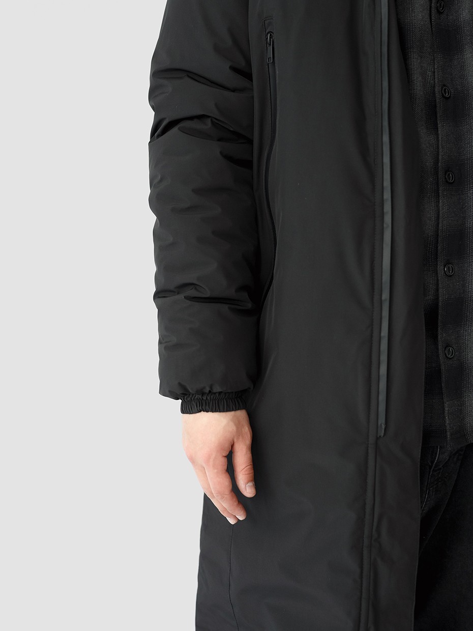 Удлиненная мужская зимняя парка M89 прямого силуэта. Манжета на резинке обеспечивает плотное прилегание рукава и защищает от ветра. Центральная застежка на водонепроницаемой молнии дополнена внутренней ветрозащитной планкой. Двойные боковые карманы объединены общей водонепроницаемой молнией. Внутренние нагрудные прорезные карманы на молнии с правой и левой стороны. Капюшон обладает регулирующим эластичным шнуром с фиксаторами. Резиновая нашивка на левом плече и брендированная резиновая мулька в боковом шве дополняют образ