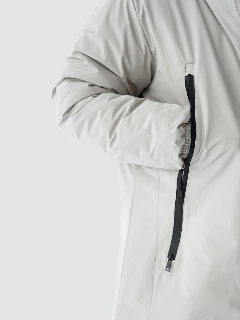 Удлиненная мужская зимняя парка M89 прямого силуэта. Манжета на резинке обеспечивает плотное прилегание рукава и защищает от ветра. Центральная застежка на водонепроницаемой молнии дополнена внутренней ветрозащитной планкой. Двойные боковые карманы объединены общей водонепроницаемой молнией. Внутренние нагрудные прорезные карманы на молнии с правой и левой стороны. Капюшон обладает регулирующим эластичным шнуром с фиксаторами. Резиновая нашивка на левом плече и брендированная резиновая мулька в боковом шве дополняют образ