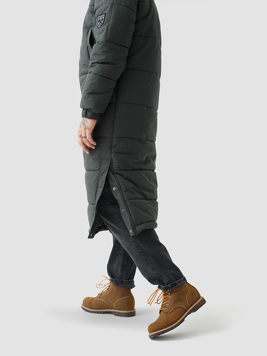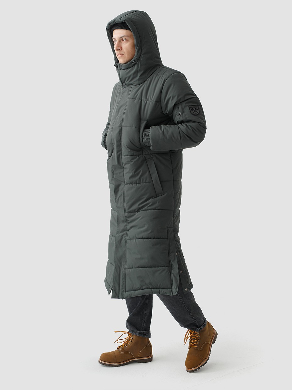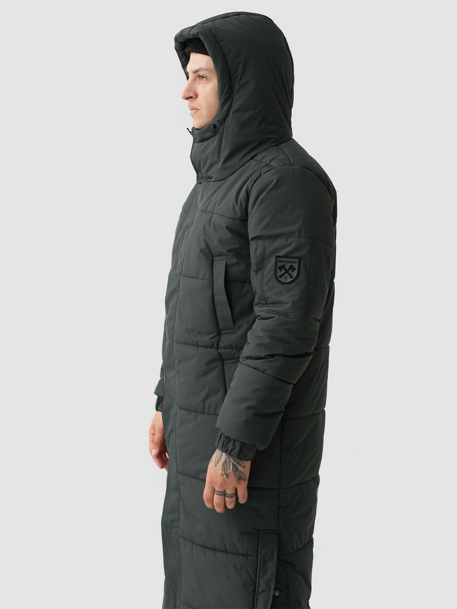 Удлиненная зимняя куртка P86 прямого силуэта с капюшоном. Длинная мужская парка отличный вариант верхней одежды для мужчины. Куртка выполнена из ткани мембрана – качественная курточная ткань с мембранной отделкой TPU с водоупорностью до 3000 мм. Ткани с такой обработкой надежно защищают от воды и снега. Центральная застежка на молнии дополнена планкой с кнопками. Манжета рукава на резинке дополнена патой на липучке, что позволяет индивидуально регулировать степени прилегания рукава к руке и обеспечивает дополнительной защитой от ветра. Вместительные боковые прорезные карманы и нагрудные прорезные карманы с мягкой флисовой подкладкой. Прорезной карман на молнии на левом плече для мелочей. Внутренний прорезной карман на молнии и внутренние накладные карманы на липучке. Увеличенная стойка капюшон обеспечивает защиту от ветра. Капюшон обладает регулирующим эластичным шнуром с фиксаторами. Разрезы в боковых швах, застегивающиеся на кнопки, позволяют регулировать степень свободы движения. Брендированная резиновая нашивка на левом плече.