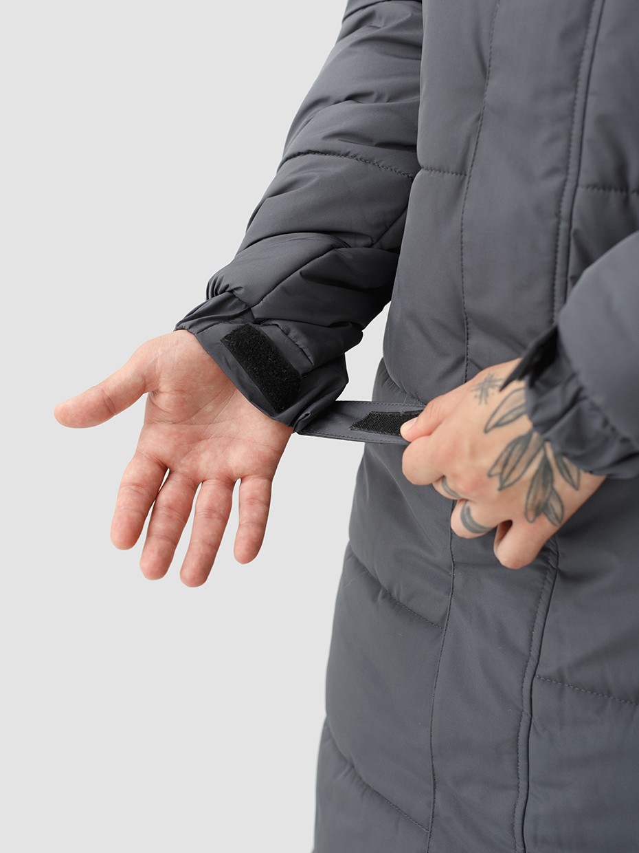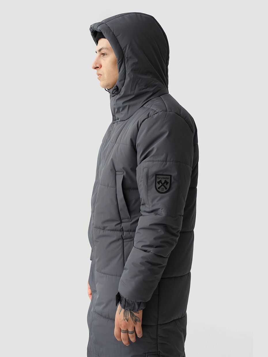 Удлиненная зимняя куртка P86 прямого силуэта с капюшоном. Длинная мужская парка отличный вариант верхней одежды для мужчины. Куртка выполнена из ткани мембрана – качественная курточная ткань с мембранной отделкой TPU с водоупорностью до 3000 мм. Ткани с такой обработкой надежно защищают от воды и снега. Центральная застежка на молнии дополнена планкой с кнопками. Манжета рукава на резинке дополнена патой на липучке, что позволяет индивидуально регулировать степени прилегания рукава к руке и обеспечивает дополнительной защитой от ветра. Вместительные боковые прорезные карманы и нагрудные прорезные карманы с мягкой флисовой подкладкой. Прорезной карман на молнии на левом плече для мелочей. Внутренний прорезной карман на молнии и внутренние накладные карманы на липучке. Увеличенная стойка капюшон обеспечивает защиту от ветра. Капюшон обладает регулирующим эластичным шнуром с фиксаторами. Разрезы в боковых швах, застегивающиеся на кнопки, позволяют регулировать степень свободы движения. Брендированная резиновая нашивка на левом плече.