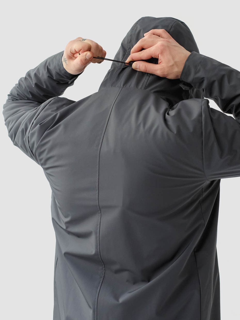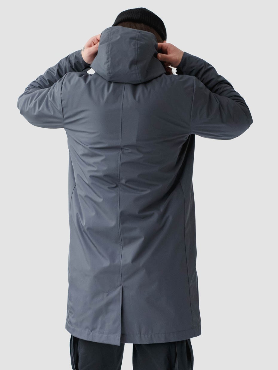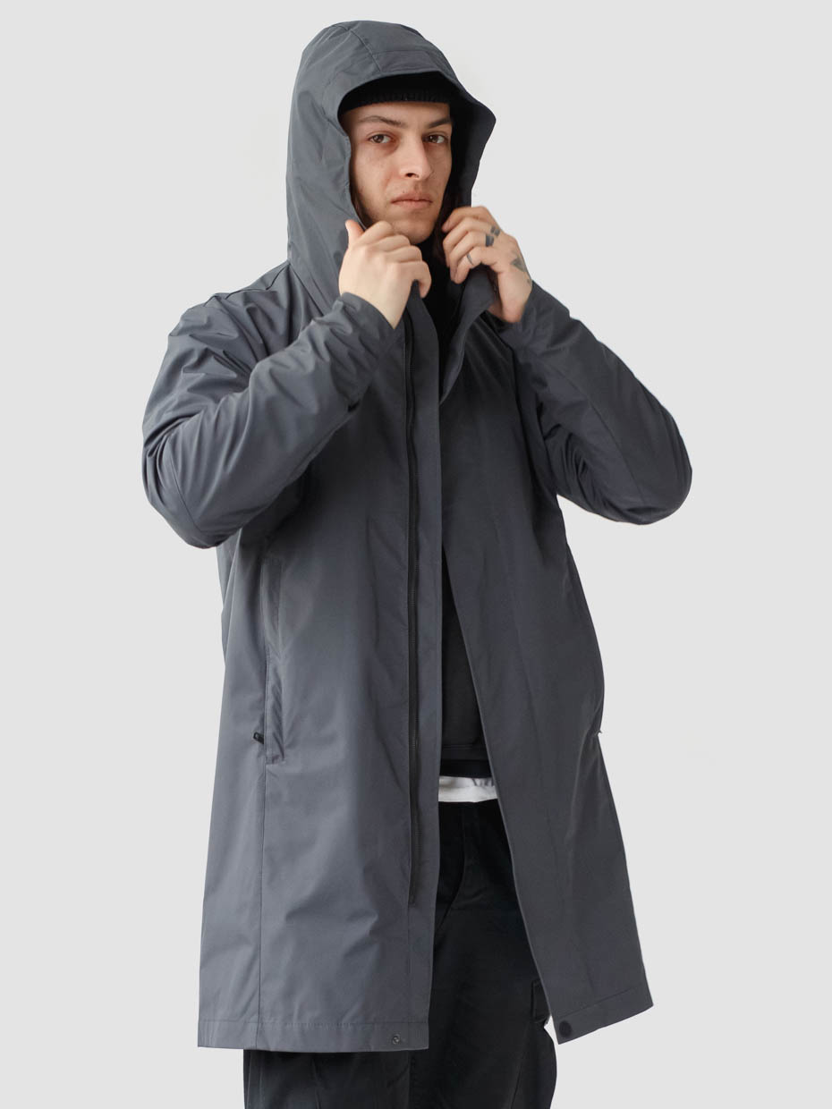 Удлиненная куртка Phantom выполнена из мембранной ткани c WR пропиткой. Крой рукава анатомический, листочка с липучкой на рукавах позволяет индивидуально регулировать степень прилегания рукава к запястью. Двухзамковая молния, закрывается ветрозащитной планкой на магнитах по всей длине, сверху и снизу закрывается металлическими кнопками. Увеличенная стойка воротника и капюшон надежно защитят от дождя и ветра. Глубина капюшона регулируется утяжкой с фиксатором. Два врезных боковых кармана на молнии. Шлица сзади добавляет удобства при ходьбе и не сковывает шаг.