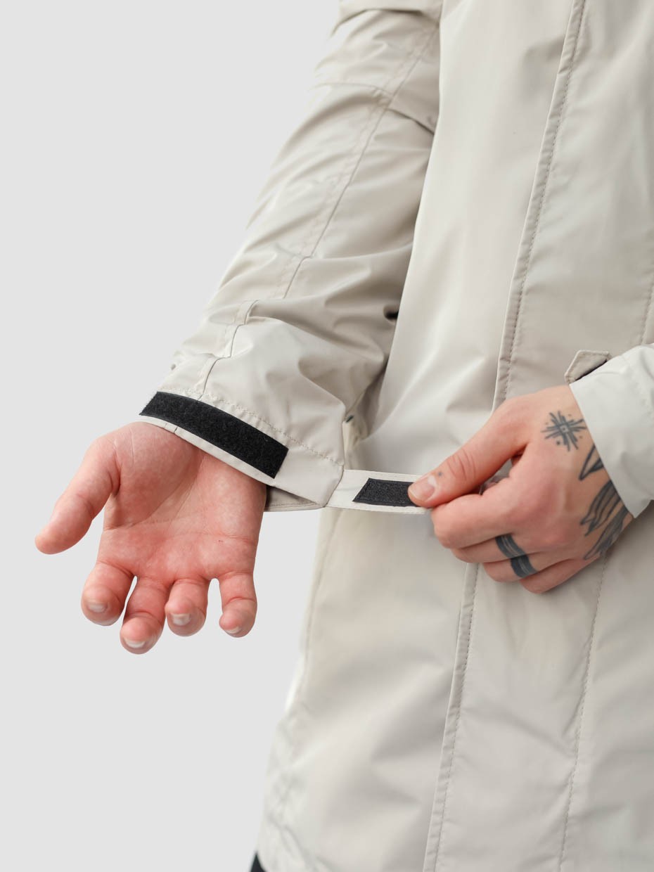 Удлиненная куртка Phantom выполнена из мембранной ткани c WR пропиткой. Крой рукава анатомический, листочка с липучкой на рукавах позволяет индивидуально регулировать степень прилегания рукава к запястью. Двухзамковая молния, закрывается ветрозащитной планкой на магнитах по всей длине, сверху и снизу закрывается металлическими кнопками. Увеличенная стойка воротника и капюшон надежно защитят от дождя и ветра. Глубина капюшона регулируется утяжкой с фиксатором. Два врезных боковых кармана на молнии. Шлица сзади добавляет удобства при ходьбе и не сковывает шаг.