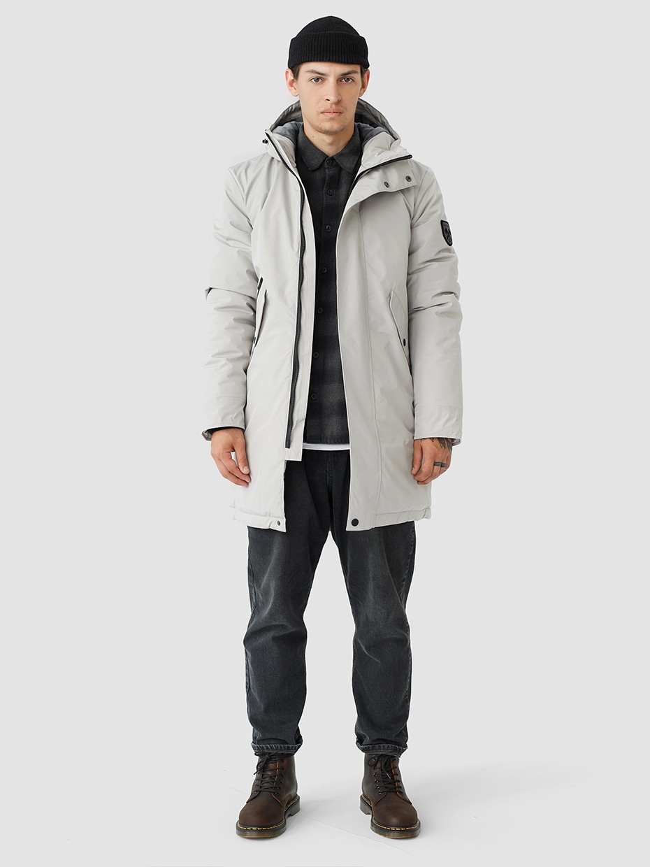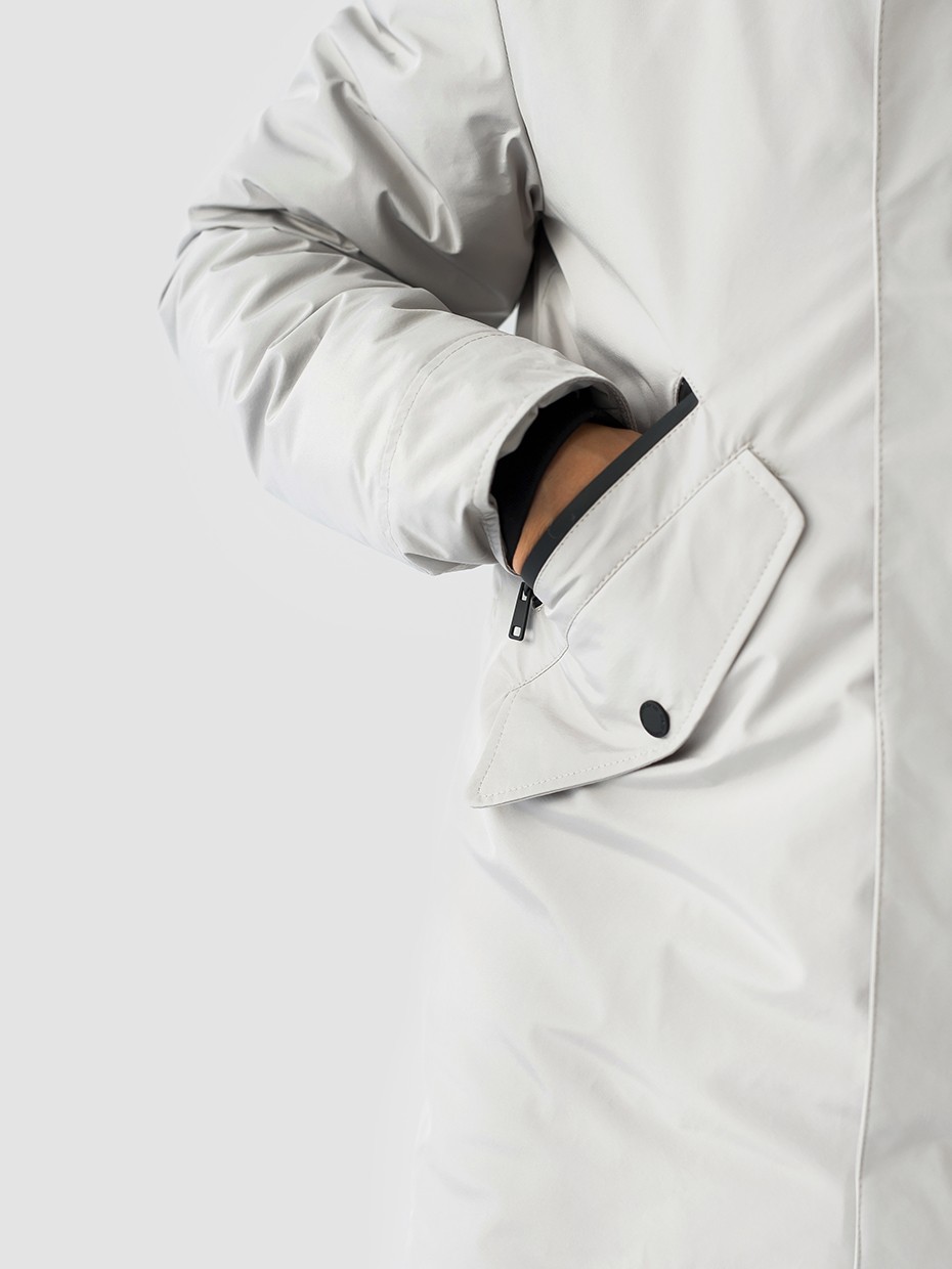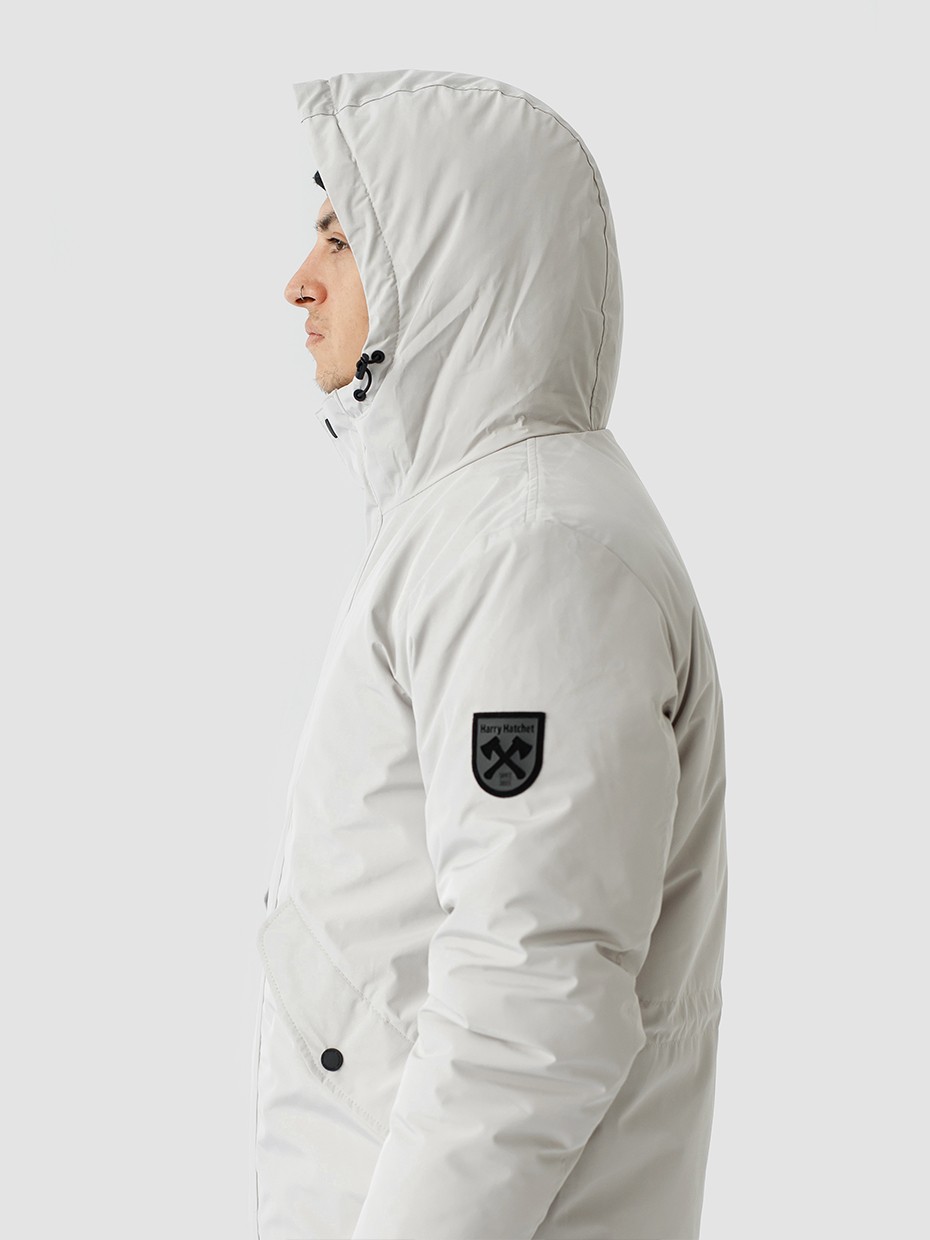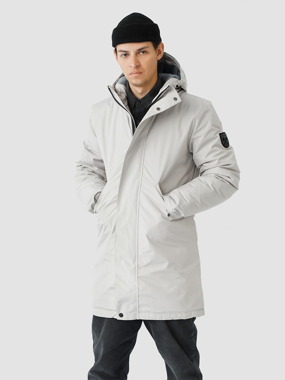 Зимняя мужская удлиненная куртка R80 прямого силуэта с декоративными элементами и двойной пропиткой (MILKY + WR coating). Длина куртки до середины бедра, что идеально подходит для повседневной носки и активного отдыха. Универсальная однотонная парка застегивается на молнию с ветрозащитной планкой на магнитах. Внутренние трикотажные манжеты на рукавах защищают от ветра и обеспечивают плотное прилегание к руке. Боковые прорезные карманы дополнены клапанами на магнитных кнопках, а подкладка карманов выполнена из мягкого гладкого флиса. Увеличенная стойка воротника и ширина козырька обеспечивают дополнительную ветрозащиту. Внутренняя часть капюшона выполнена из мягкой искусственной шерсти. Кулиска на талии с регулирующим шнуром и фиксаторами из искусственной кожи позволяет регулировать степень прилегания куртки к телу. Резиновая брендированная нашивка на левом плече и резиновая мулька в боковом шве дополняют изделие.