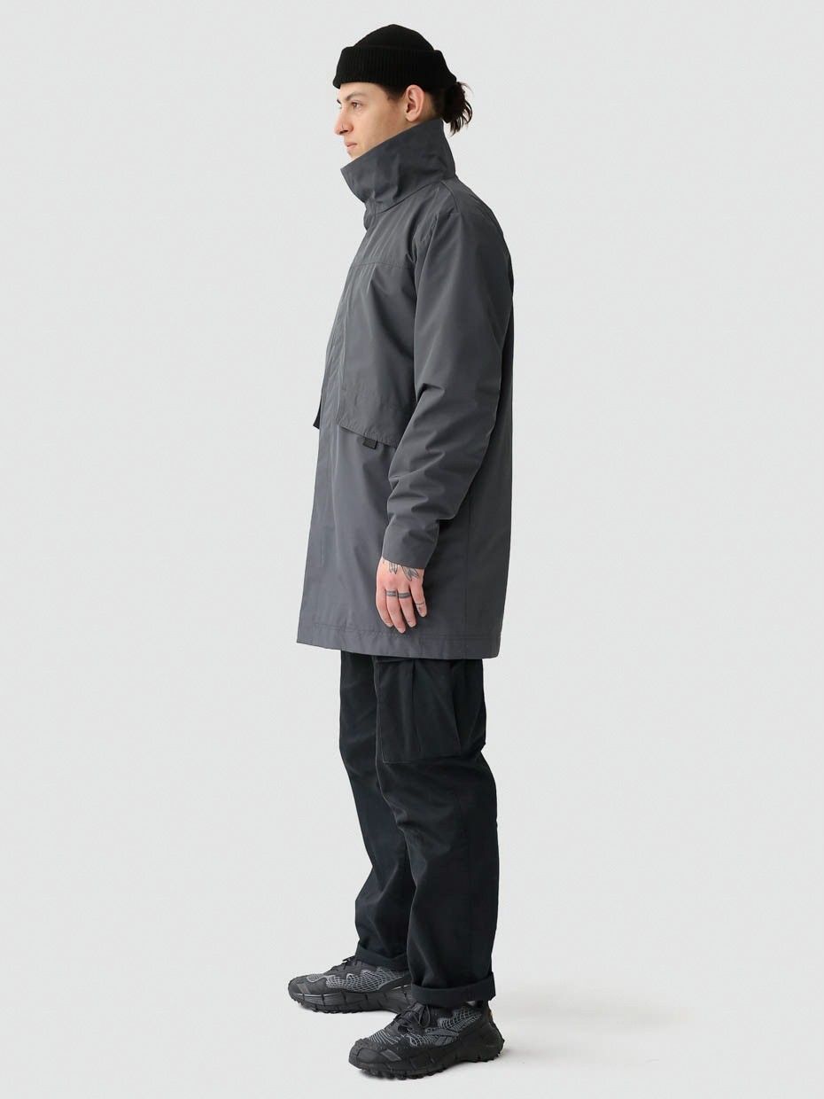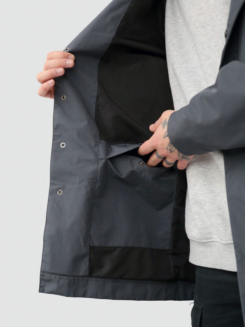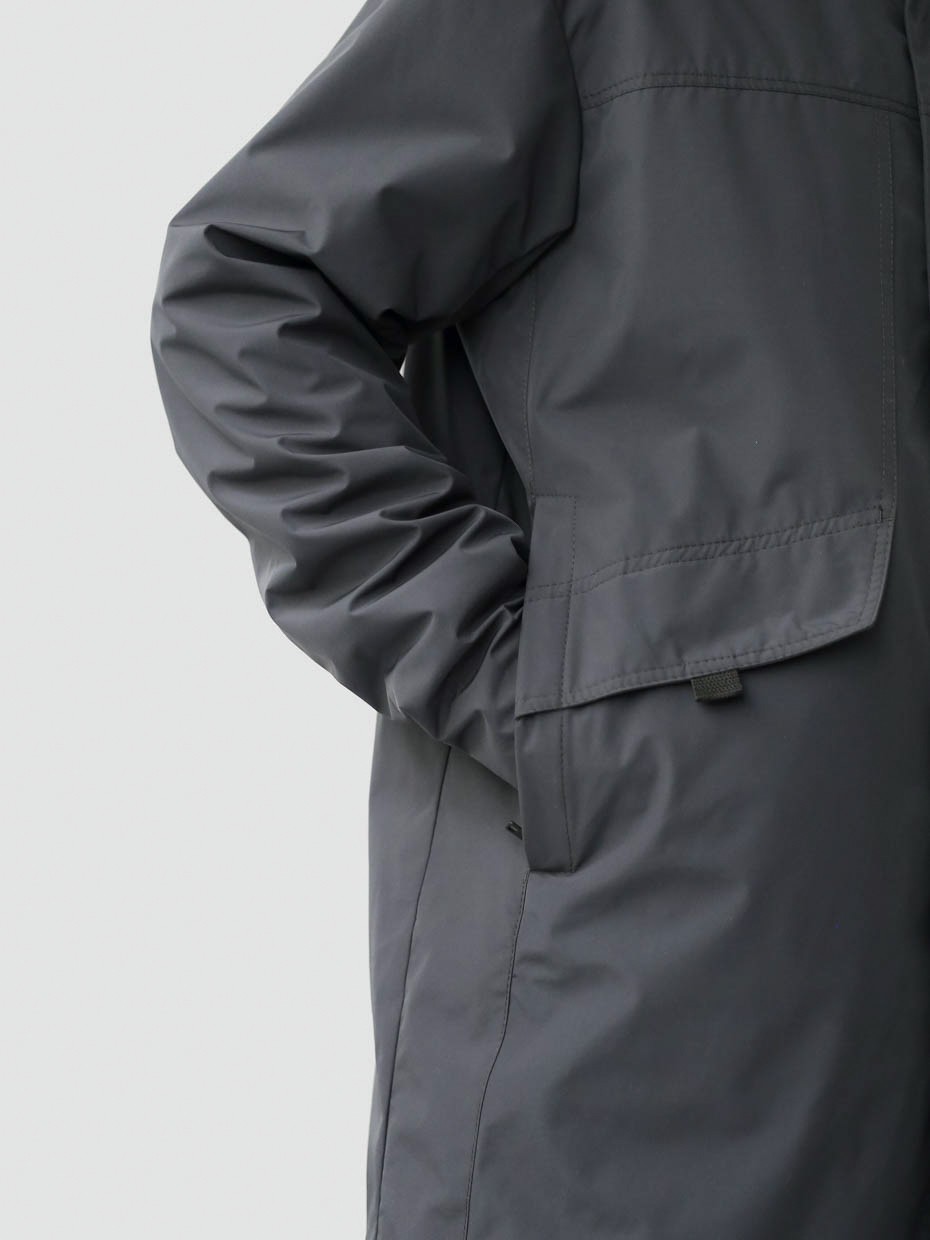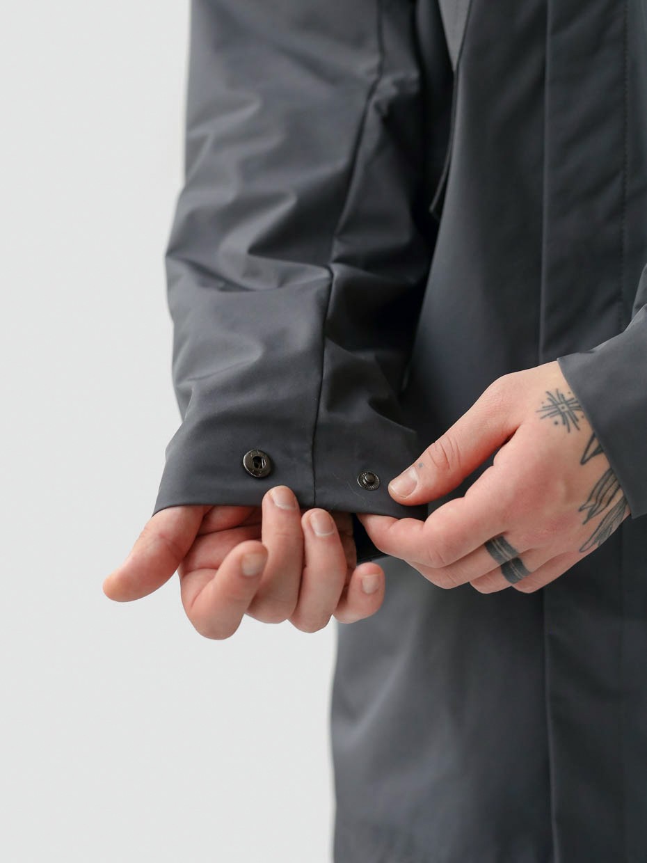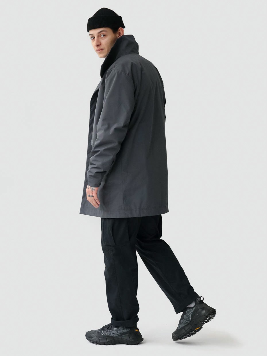 Удлиненная куртка Rob выполнена из мембранной ткани c WR пропиткой. Модель прямого кроя. Высокий воротник-стойка защитит от ветра. Ветрозащитная планка на металлических кнопках по всей длине. Два врезных боковых кармана на молнии, и два внутренних на кнопках. Ширина запястья регулируется металлическими кнопками.