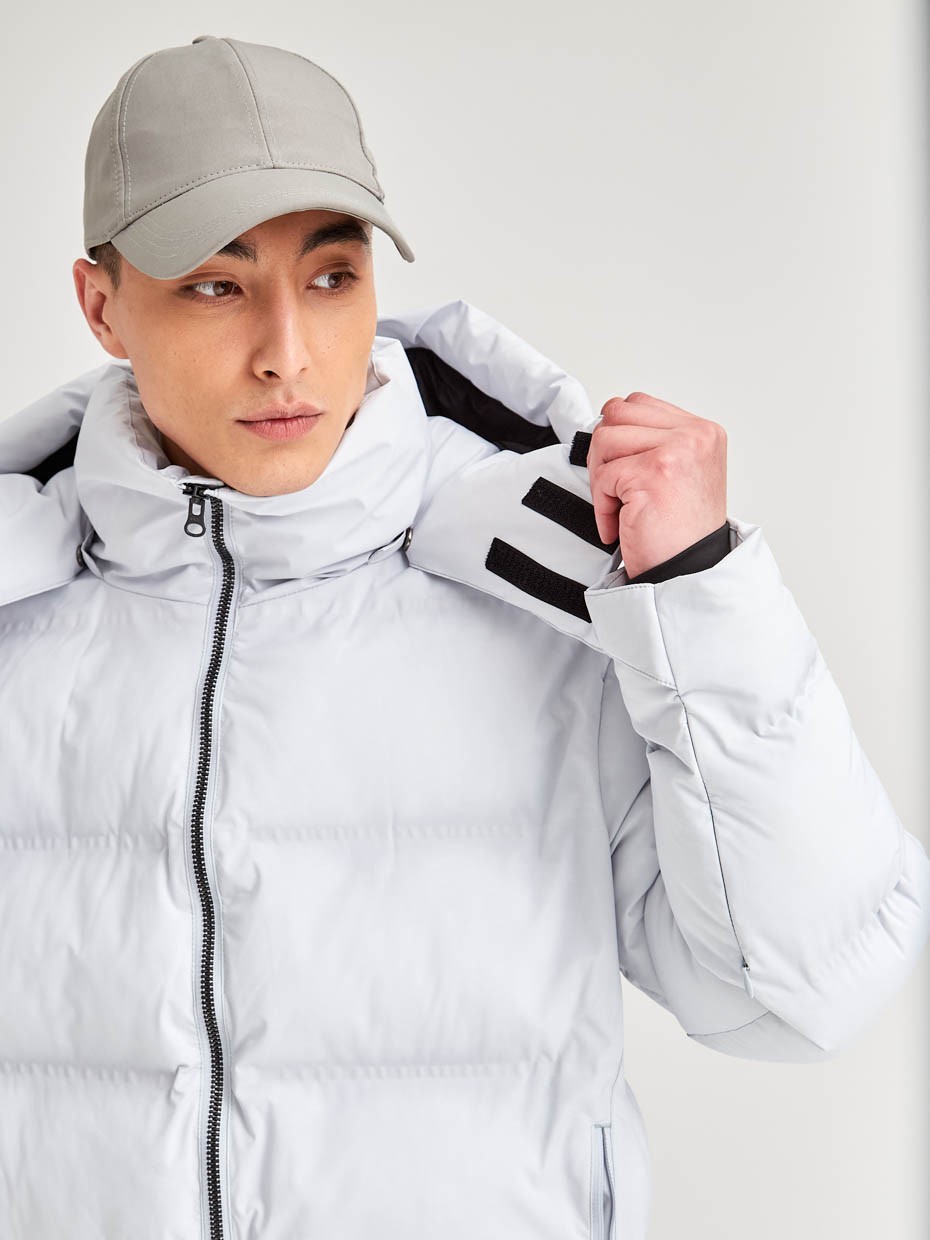 — Съёмный объемный капюшон на кнопках, застёгивающийся на липучку
