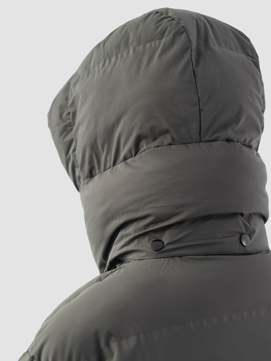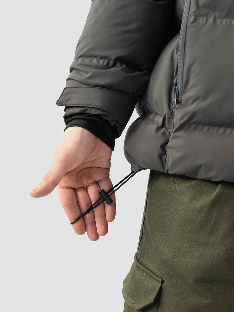 Мужской зимний пуховик Russell, изготовлен из качественной водоотталкивающей ткани. Куртка в стиле oversize – это верхняя одежда, подходящая взрослым мужчинам и парням. Длина куртки до бедра, что идеально подходит для повседневной носки и активного отдыха. Застегивается на молнию с внутренним ветрозащитным клапаном. Рукава дополняют манжеты на резинке. Ширина рукава регулируется липучкой. 2 боковых внешних кармана на молнии. Регулируемый низ с эластичным шнурком и фиксаторами. Объемный ворот. Съёмный объемный капюшон на кнопках, застёгивающийся на липучку. Внутри дополнительный карман на молнии. Пуховик выполнен из ткани мембрана с отделкой TPU. Ткани с такой обработкой обладают мягкостью, при этом надежно защищая от воды и снега. В качестве утеплителя взят материал био-пух DuPont Sorona – по термоизолирующим характеристикам идентичен натуральному птичьему пуху, но при этом имеет ряд преимуществ, таких как эластичность, негигроскопичность и гипоаллергенность.