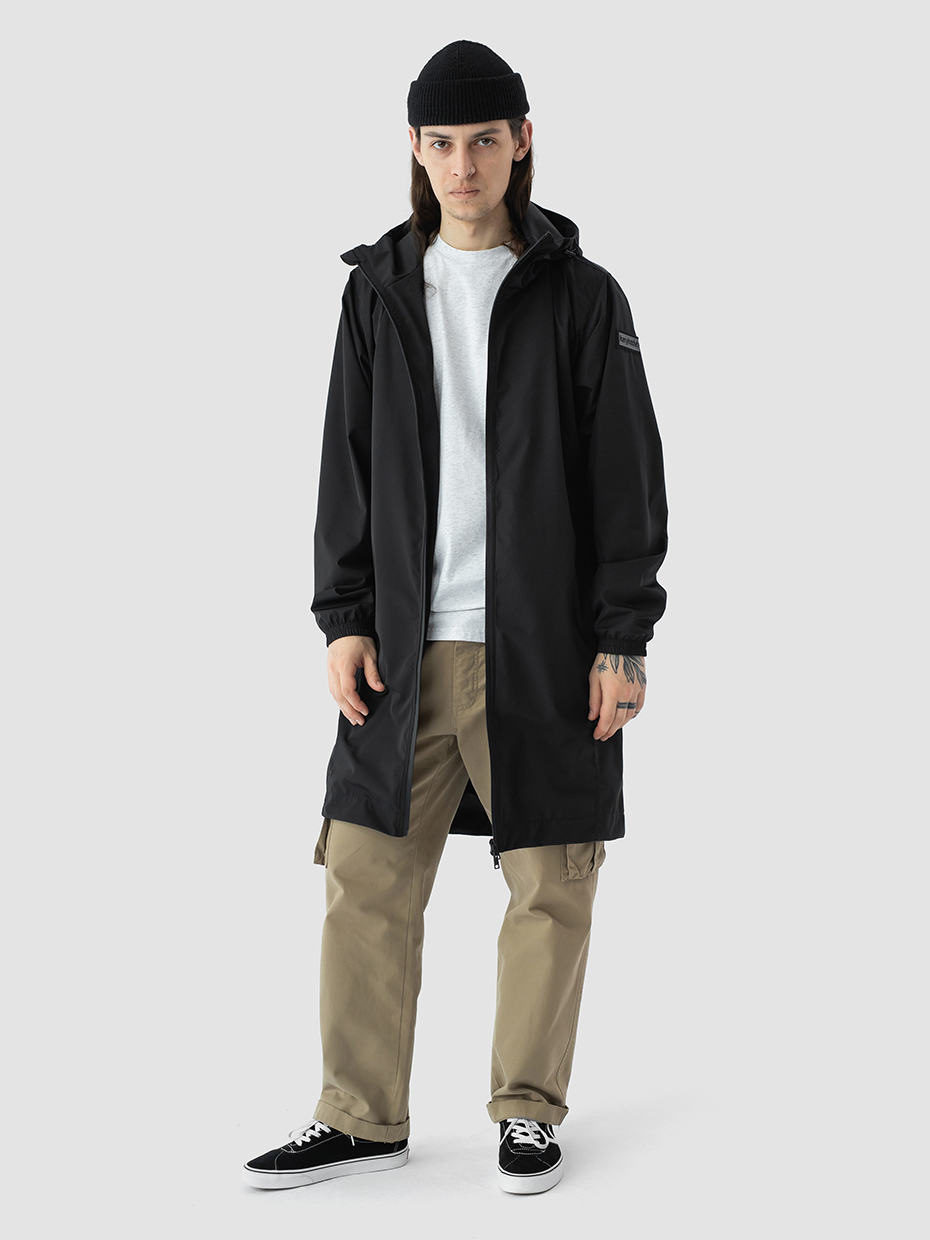 Удлиненная легкая куртка S75 без утеплителя. Силуэт слегка притален. Куртка выполнена из ткани мембрана – качественная курточная ткань с мембранной отделкой TPU с водоупорностью до 3000 мм. Ткани с такой обработкой надежно защищают от воды и ветра. Верх куртки дополнительно обработан специальной WR пропиткой, которая улучшает водоотталкивающие свойства. Центральная прорезиненная двухзамковая молния защитит от попадания влаги внутри. Объем капюшона регулируется эластичным шнуром с металлическими фиксаторами. Резинка по низу рукава обеспечивает плотное прилегание в области запястья. Боковые карманы застегиваются на водонепроницаемые молнии. Нашивка на левом плече дополняет образ.