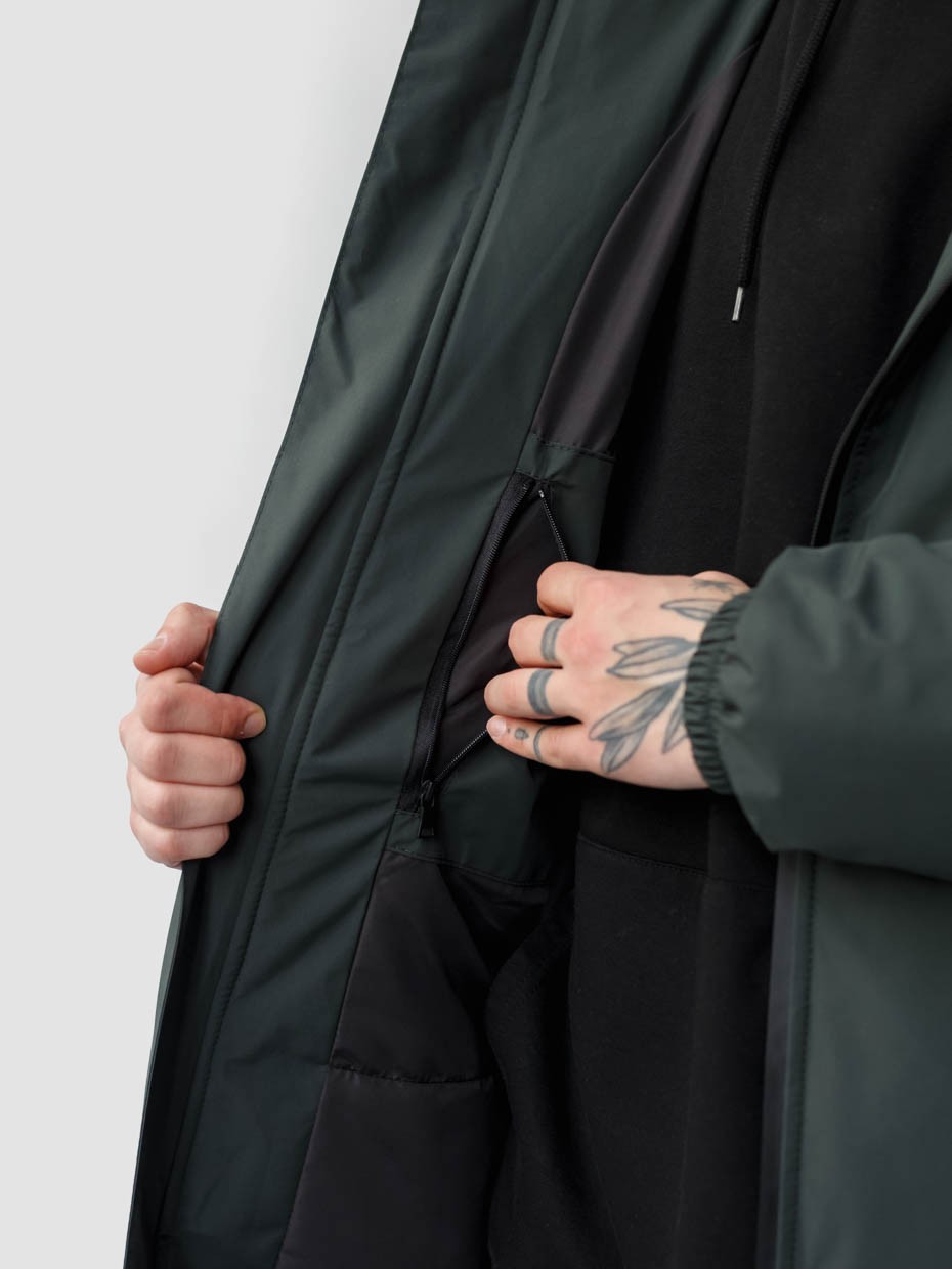 — Комбинированные боковые карманы на одной прорезиненной молнии