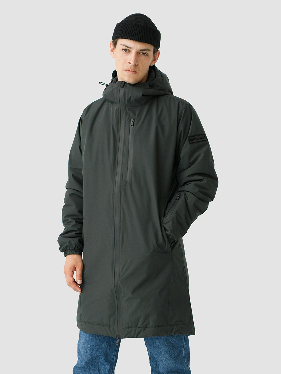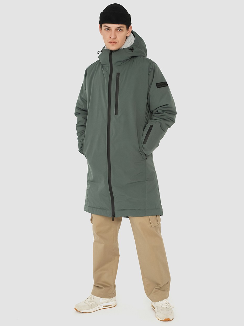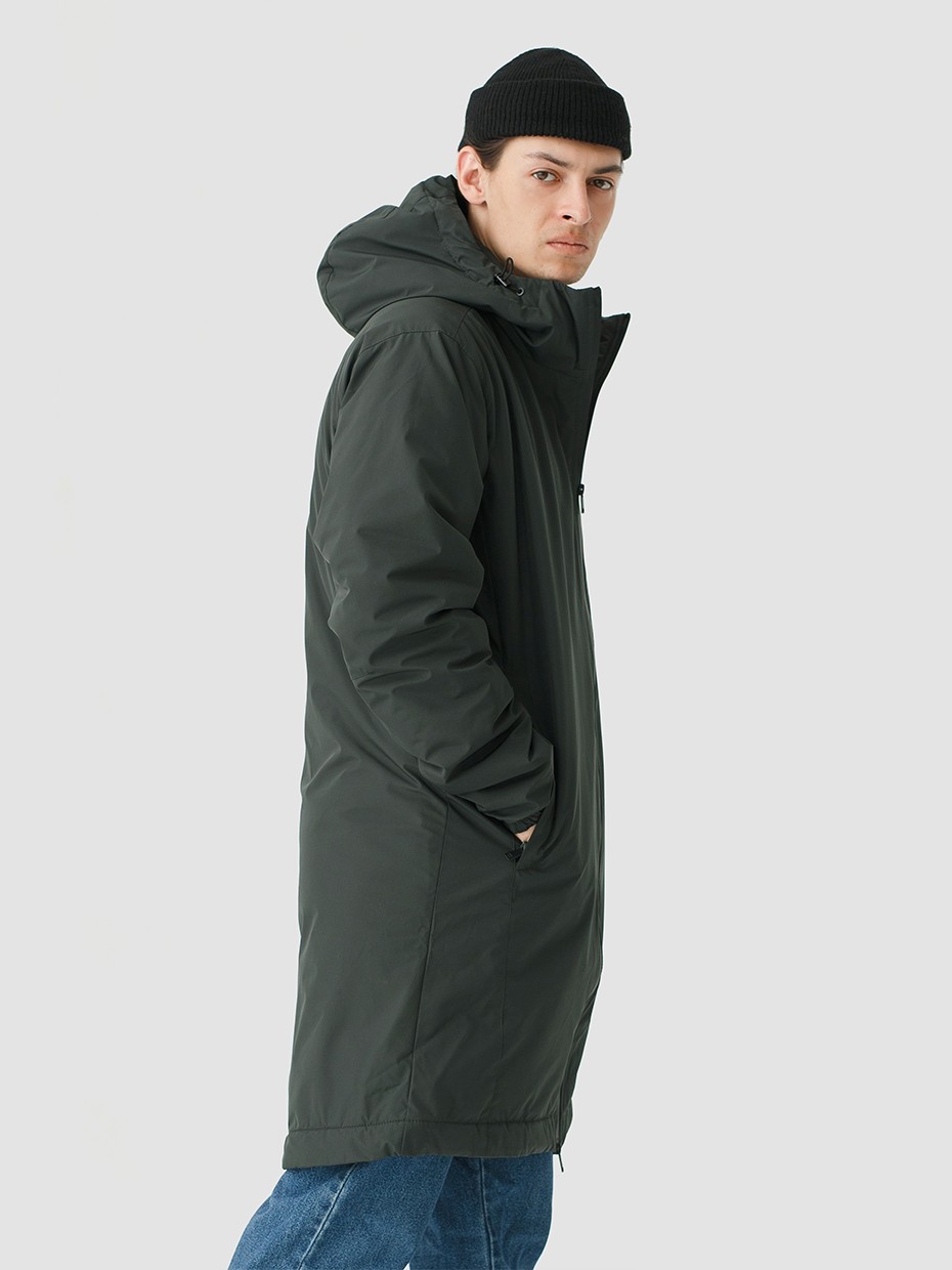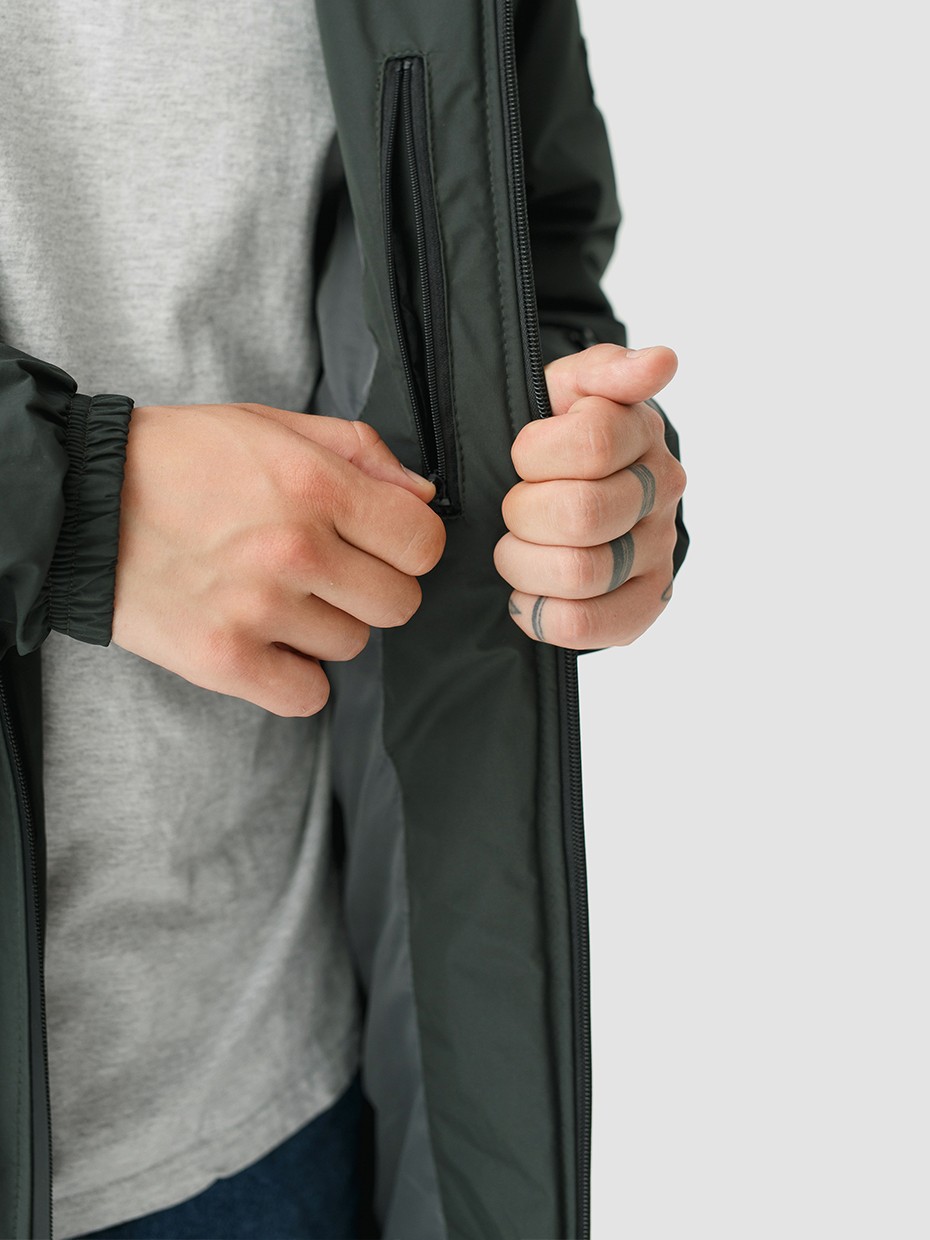 Удлиненная демисезонная куртка S78 прямого силуэта c плотный слоем искусcтвенного утеплителя – ФАЙБЕРТЕК™. Это нетканый материал, представляющий собой объемный слой из композиции тонких пустотелых волокон с элементами объемного термоскрепления.  Куртка выполнена из ткани мембрана – качественная курточная ткань с мембранной отделкой TPU с водоупорностью до 3000 мм. Ткани с такой обработкой надежно защищают от воды и снега. Центральная застежка на водонепроницаемой молнии. Резинка по низу рукава обеспечивает плотное прилегание в области запястья. Боковые карманы и нагрудный прорезной карман застегиваются на водонепроницаемые молнии. Внутренний нагрудный карман на молнии. Капюшон дополнен увеличенной шириной козырька и увеличенной высотой стойки для дополнительной защиты от ветра. Капюшон регулируется эластичным шнуром с фиксаторами. Нашивка на левом плече дополняет образ.