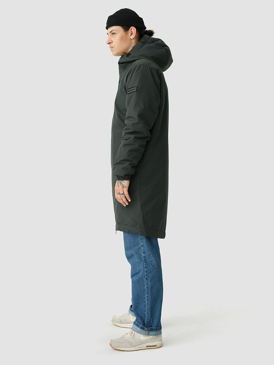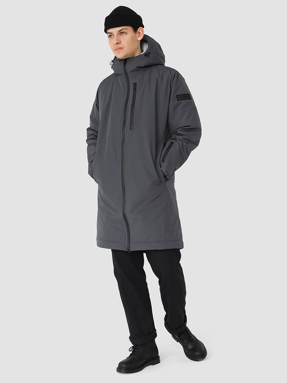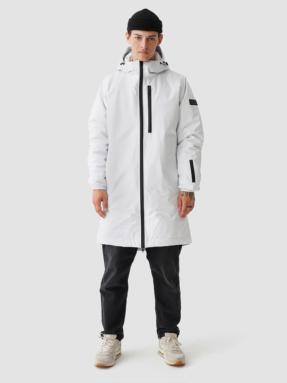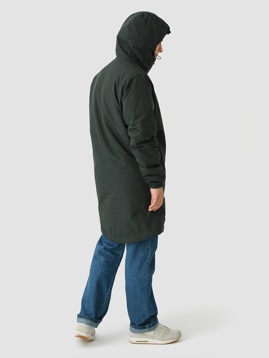 Удлиненная демисезонная куртка S78 прямого силуэта c плотный слоем искусcтвенного утеплителя – ФАЙБЕРТЕК™. Это нетканый материал, представляющий собой объемный слой из композиции тонких пустотелых волокон с элементами объемного термоскрепления.  Куртка выполнена из ткани мембрана – качественная курточная ткань с мембранной отделкой TPU с водоупорностью до 3000 мм. Ткани с такой обработкой надежно защищают от воды и снега. Центральная застежка на водонепроницаемой молнии. Резинка по низу рукава обеспечивает плотное прилегание в области запястья. Боковые карманы и нагрудный прорезной карман застегиваются на водонепроницаемые молнии. Внутренний нагрудный карман на молнии. Капюшон дополнен увеличенной шириной козырька и увеличенной высотой стойки для дополнительной защиты от ветра. Капюшон регулируется эластичным шнуром с фиксаторами. Нашивка на левом плече дополняет образ.