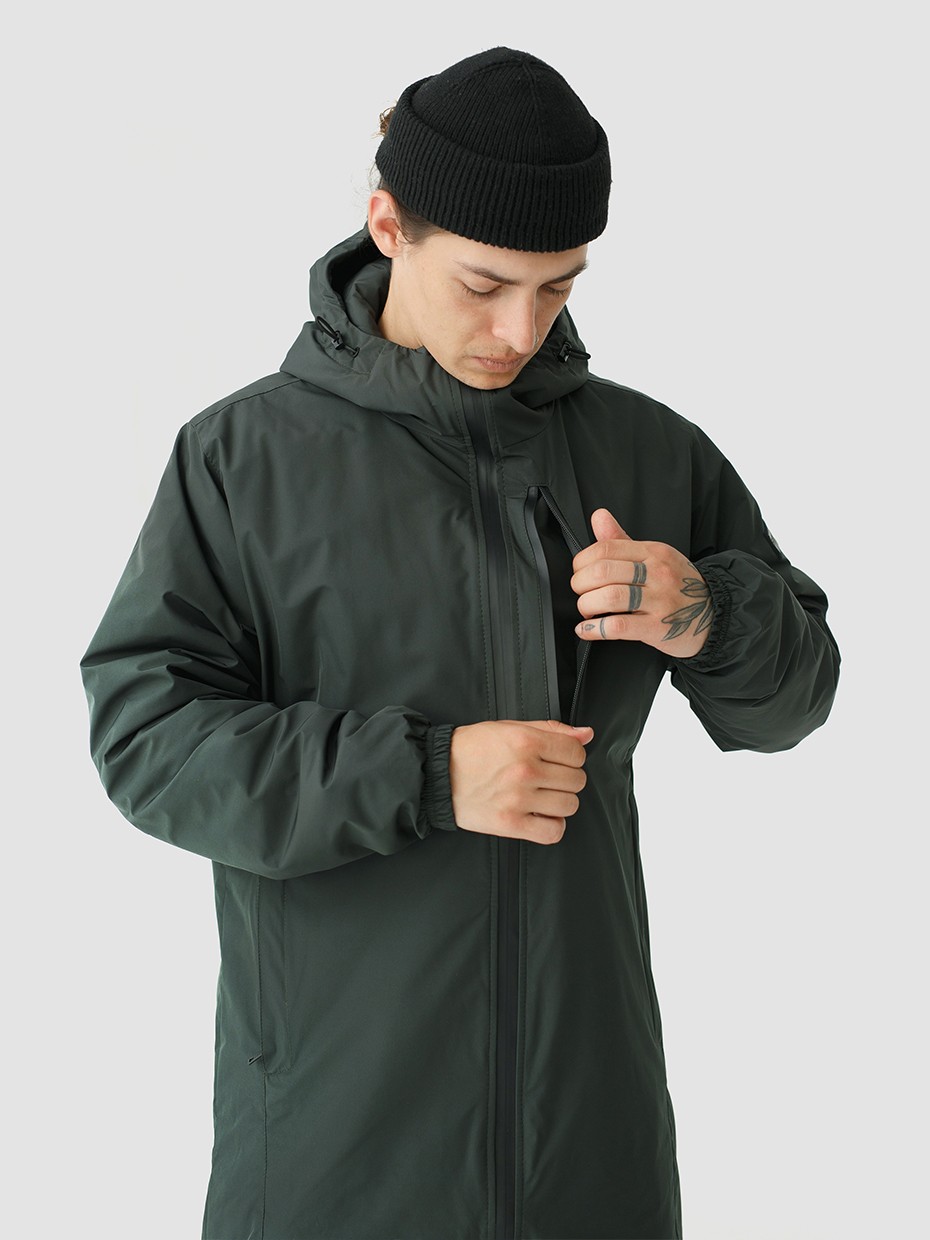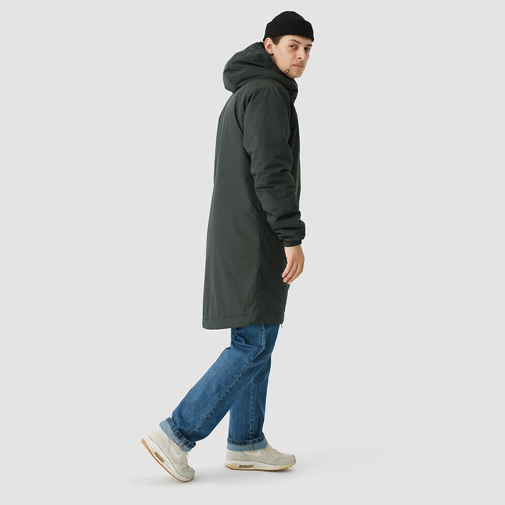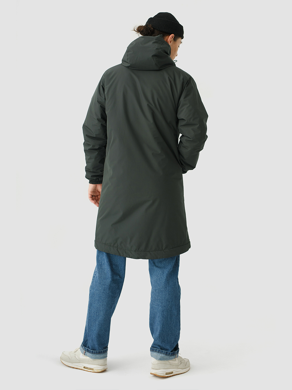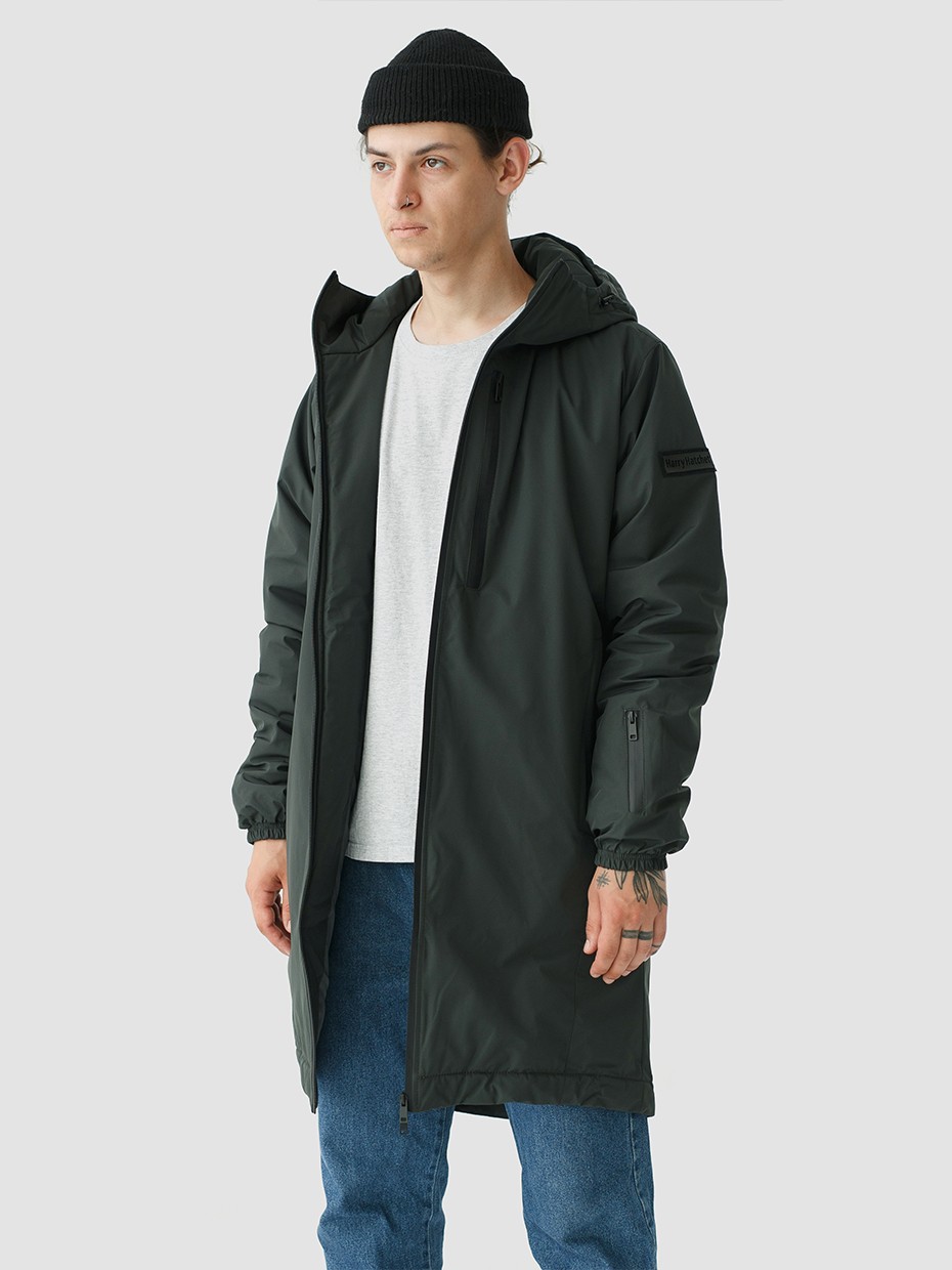 Удлиненная демисезонная куртка S78 прямого силуэта c плотный слоем искусcтвенного утеплителя – ФАЙБЕРТЕК™. Это нетканый материал, представляющий собой объемный слой из композиции тонких пустотелых волокон с элементами объемного термоскрепления.  Куртка выполнена из ткани мембрана – качественная курточная ткань с мембранной отделкой TPU с водоупорностью до 3000 мм. Ткани с такой обработкой надежно защищают от воды и снега. Центральная застежка на водонепроницаемой молнии. Резинка по низу рукава обеспечивает плотное прилегание в области запястья. Боковые карманы и нагрудный прорезной карман застегиваются на водонепроницаемые молнии. Внутренний нагрудный карман на молнии. Капюшон дополнен увеличенной шириной козырька и увеличенной высотой стойки для дополнительной защиты от ветра. Капюшон регулируется эластичным шнуром с фиксаторами. Нашивка на левом плече дополняет образ.