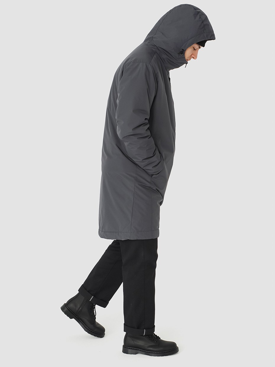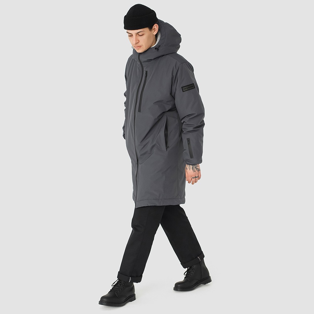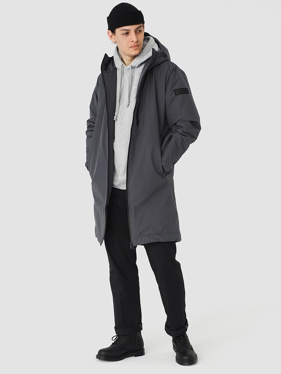 Удлиненная демисезонная куртка S78 прямого силуэта c плотный слоем искусcтвенного утеплителя – ФАЙБЕРТЕК™. Это нетканый материал, представляющий собой объемный слой из композиции тонких пустотелых волокон с элементами объемного термоскрепления.  Куртка выполнена из ткани мембрана – качественная курточная ткань с мембранной отделкой TPU с водоупорностью до 3000 мм. Ткани с такой обработкой надежно защищают от воды и снега. Центральная застежка на водонепроницаемой молнии. Резинка по низу рукава обеспечивает плотное прилегание в области запястья. Боковые карманы и нагрудный прорезной карман застегиваются на водонепроницаемые молнии. Внутренний нагрудный карман на молнии. Капюшон дополнен увеличенной шириной козырька и увеличенной высотой стойки для дополнительной защиты от ветра. Капюшон регулируется эластичным шнуром с фиксаторами. Нашивка на левом плече дополняет образ.