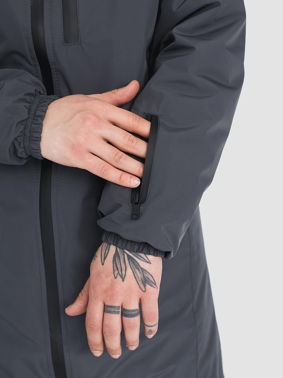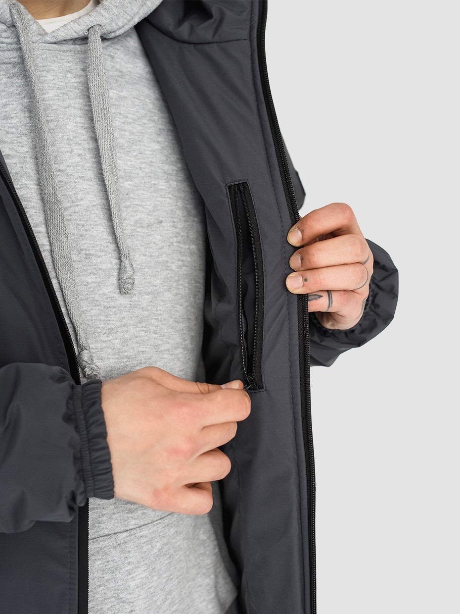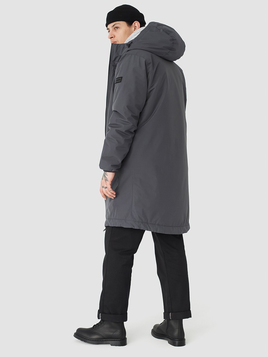 Удлиненная демисезонная куртка S78 прямого силуэта c плотный слоем искусcтвенного утеплителя – ФАЙБЕРТЕК™. Это нетканый материал, представляющий собой объемный слой из композиции тонких пустотелых волокон с элементами объемного термоскрепления.  Куртка выполнена из ткани мембрана – качественная курточная ткань с мембранной отделкой TPU с водоупорностью до 3000 мм. Ткани с такой обработкой надежно защищают от воды и снега. Центральная застежка на водонепроницаемой молнии. Резинка по низу рукава обеспечивает плотное прилегание в области запястья. Боковые карманы и нагрудный прорезной карман застегиваются на водонепроницаемые молнии. Внутренний нагрудный карман на молнии. Капюшон дополнен увеличенной шириной козырька и увеличенной высотой стойки для дополнительной защиты от ветра. Капюшон регулируется эластичным шнуром с фиксаторами. Нашивка на левом плече дополняет образ.
