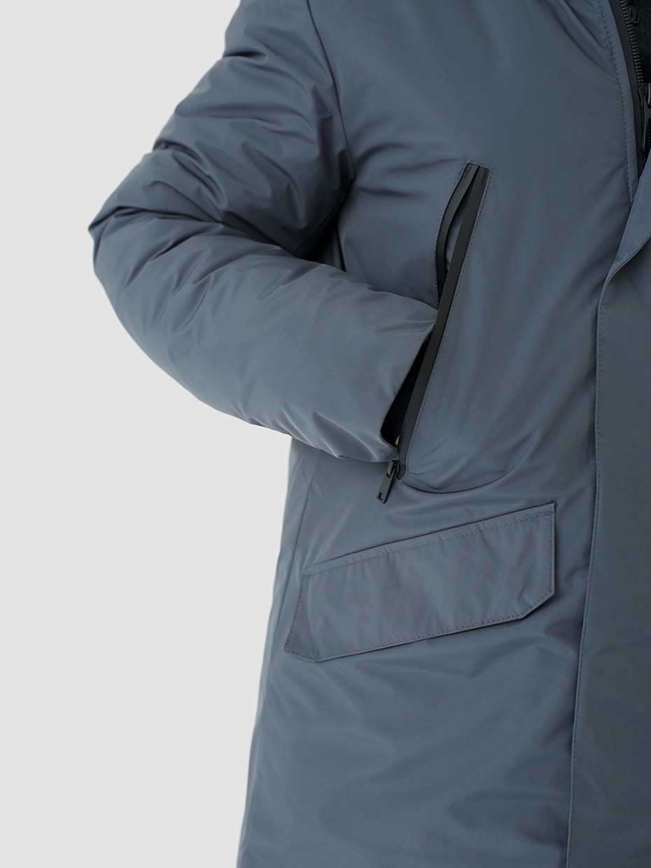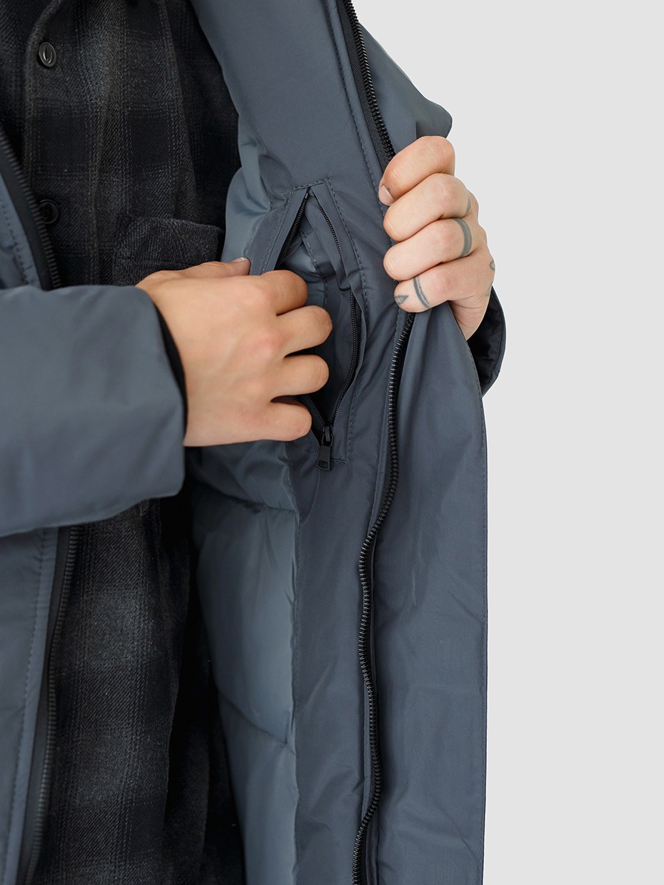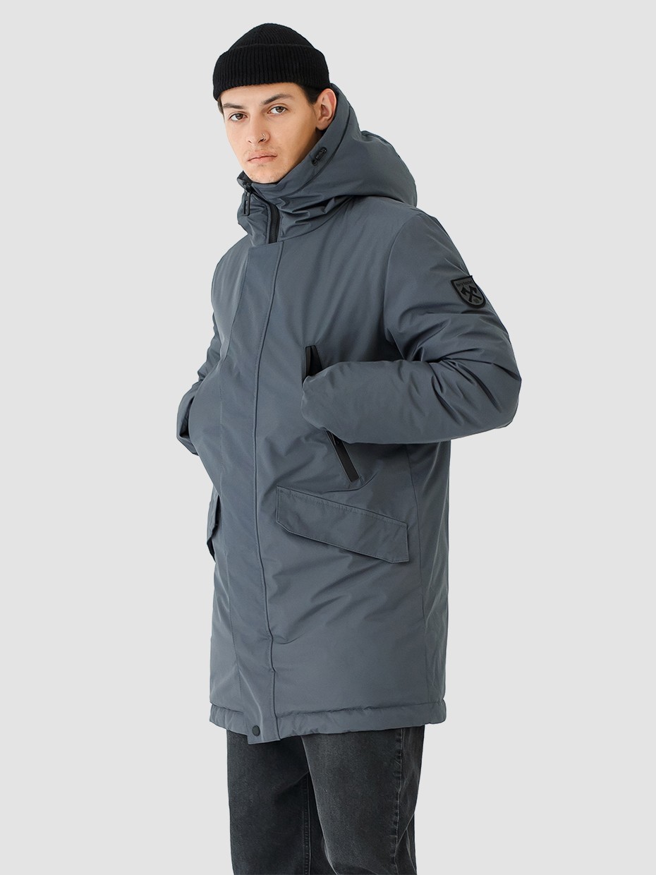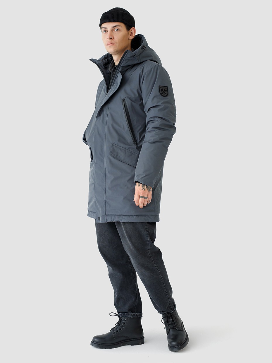 Зимняя мужская парка Volker прямого силуэта с декоративными элементами. Куртка выполнена из ткани мембрана – качественная курточная ткань с мембранной отделкой TPU с водоупорностью до 3000 мм. Длина куртки до середины бедра, что идеально подходит для повседневной носки и активного отдыха. Универсальная однотонная парка застегивается на молнию с ветрозащитной планкой на магнитах. Центральная застежка на молнии с ветрозащитной планкой на магнитах. Внутренние трикотажные манжеты на рукавах защищают от ветра. Модель имеет наружные нагрудные карманы, которые закрываются прорезиненной молнией. Боковые прорезные карманы дополнены клапанами на кнопках. Подкладка карманов выполнена из мягкого гладкого флиса. Потайной карман на молнии на левом рукаве. Внутренний нагрудный карман. Высокий воротник и глубокий регулируемый капюшон надежно защищают от ветра и осадков.