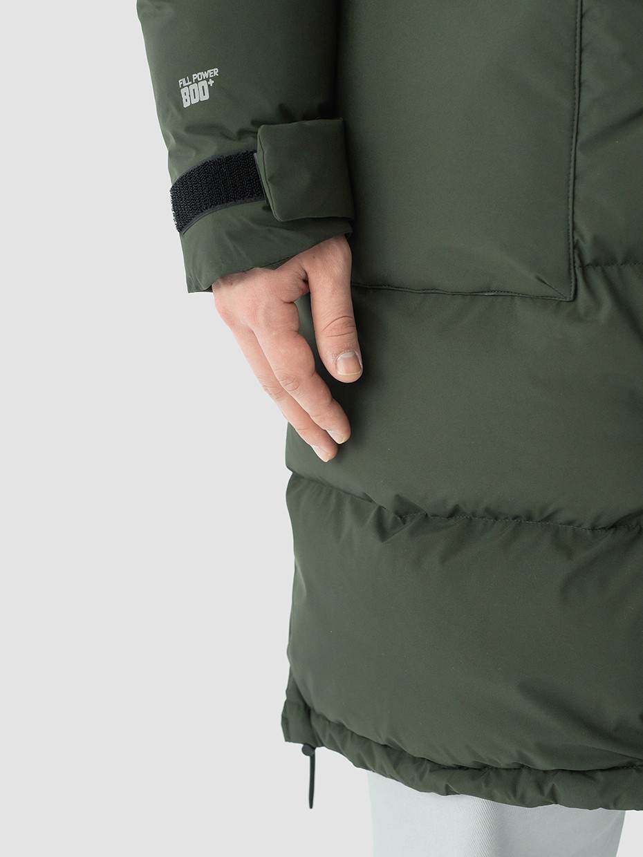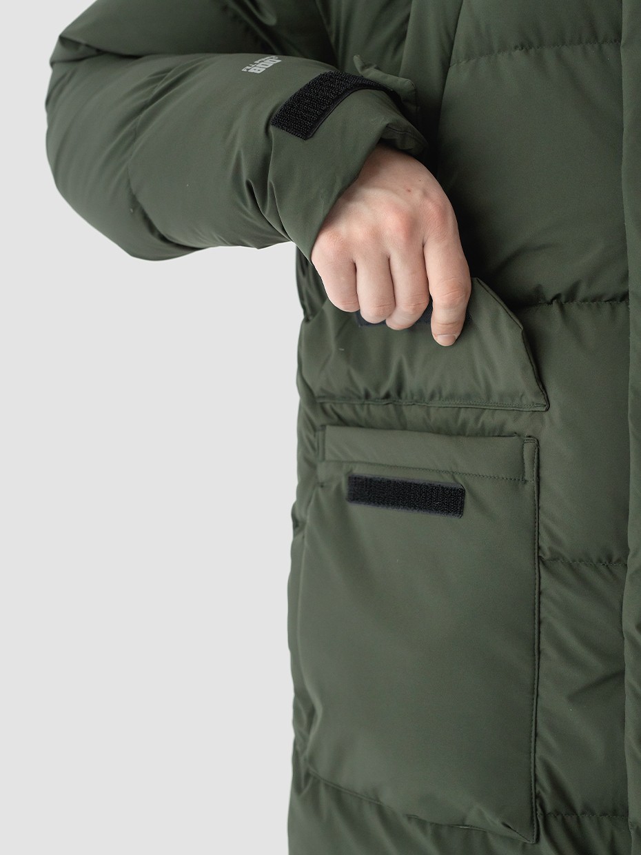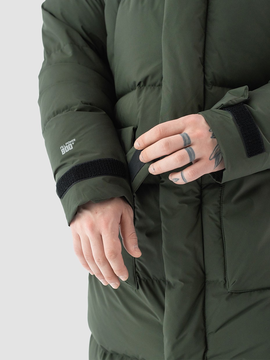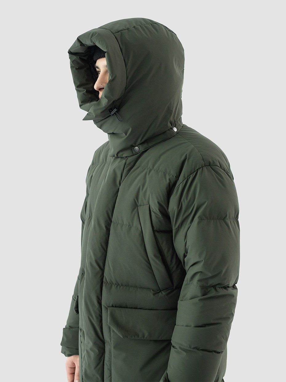 Длинный мужской пуховик Stoner с водоотталкивающей пропиткой WR. Утеплитель: 80% гусиный пух, 20% перо. Центральная застежка на молнии производства фирмы YKK с ветрозащитной планкой на липучках. Внутренние трикотажный манжеты и пата на липучке на рукавах обеспечивают плотное прилегание к руке. Отстегивающийся капюшон с высоким воротником, застегивающимся на липучку и кнопку, надежно защищает от ветра и осадков. Большие накладные карманы с клапаном на липучке и дополнительным боковым входом, прорезные нагрудные карманы на молнии, внутренний нагрудный карман на молнии. Подкладка карманов и внутренняя часть воротника выполнены из мягкого флиса для дополнительного комфорта.