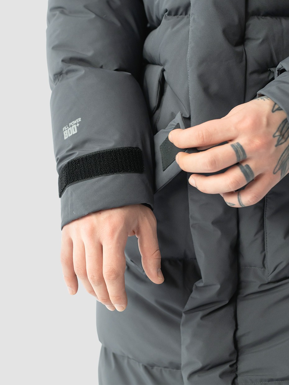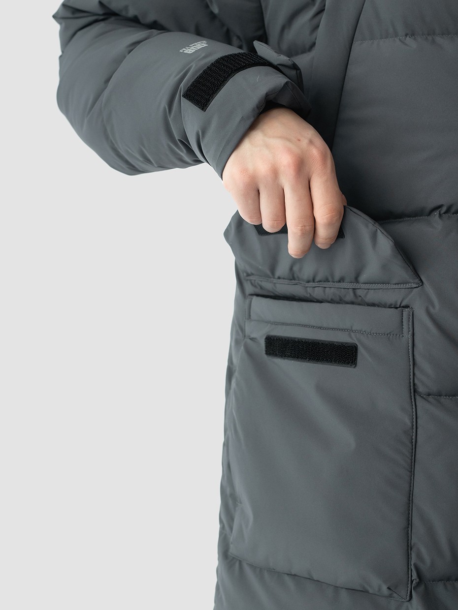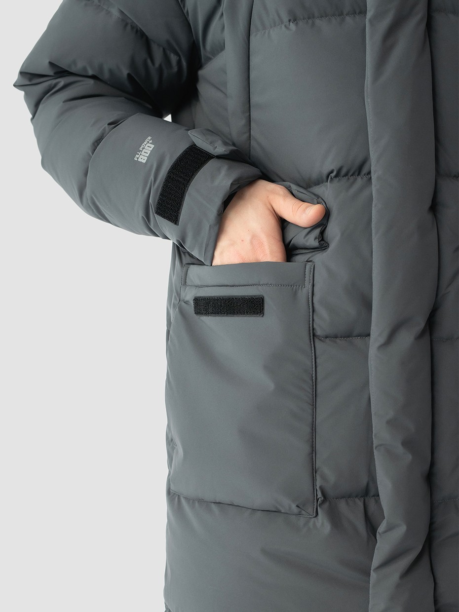 Длинный мужской пуховик Stoner с водоотталкивающей пропиткой WR. Утеплитель: 80% гусиный пух, 20% перо. Центральная застежка на молнии производства фирмы YKK с ветрозащитной планкой на липучках. Внутренние трикотажный манжеты и пата на липучке на рукавах обеспечивают плотное прилегание к руке. Отстегивающийся капюшон с высоким воротником, застегивающимся на липучку и кнопку, надежно защищает от ветра и осадков. Большие накладные карманы с клапаном на липучке и дополнительным боковым входом, прорезные нагрудные карманы на молнии, внутренний нагрудный карман на молнии. Подкладка карманов и внутренняя часть воротника выполнены из мягкого флиса для дополнительного комфорта.