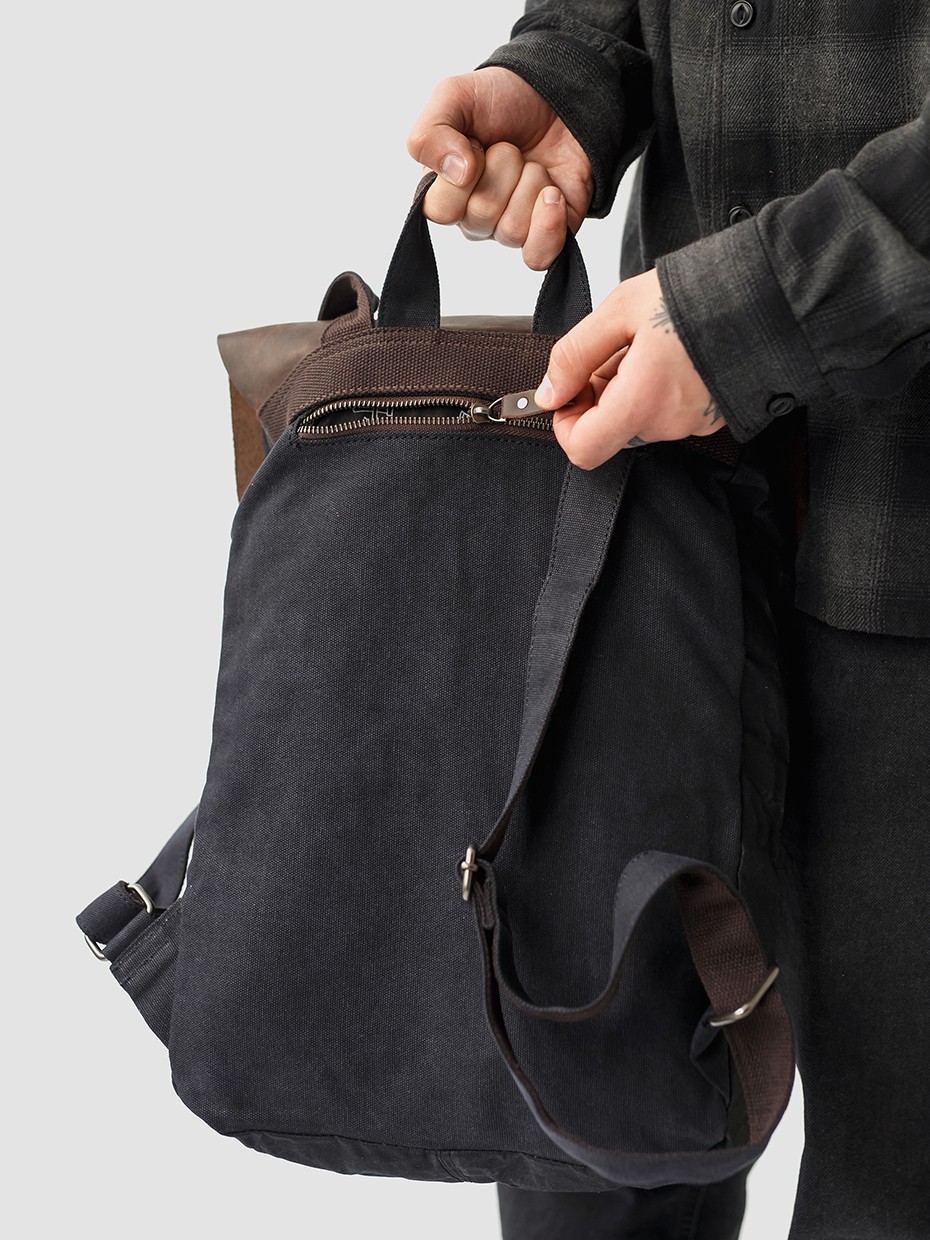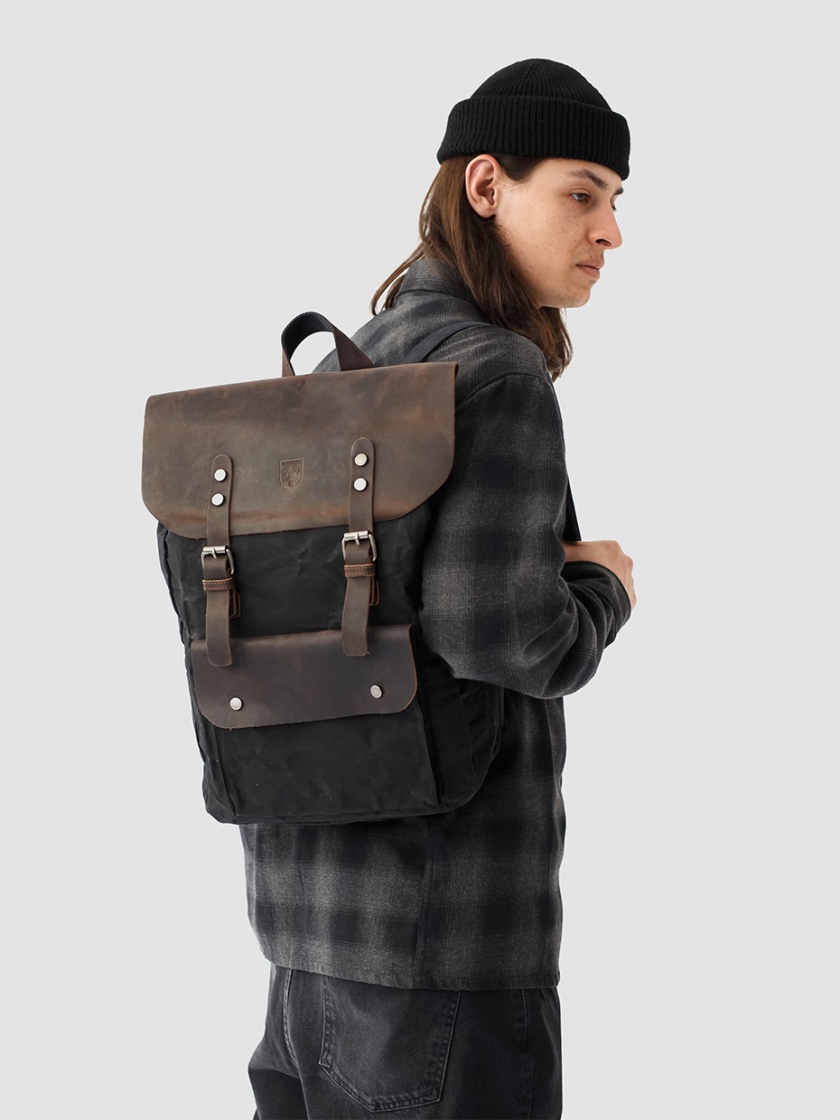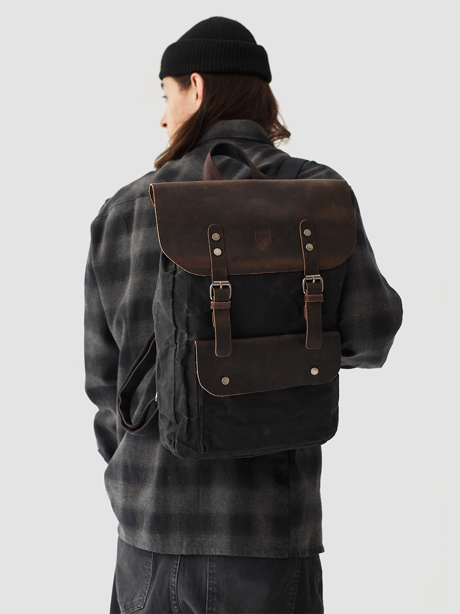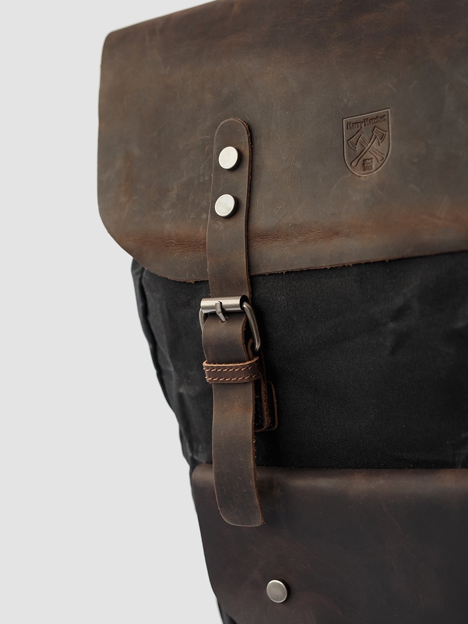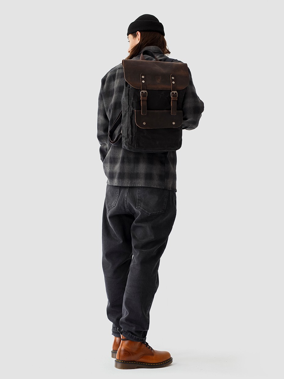 Рюкзак 2166. Рюкзак выполнен из натуральной кожи и высококачественного вощеного хлопка. Рюкзак  устойчив к выгоранию на солнце и имеет много дополнительного места для хранения. Влагостойкий портфель оснащен наружными карманами, регулируемыми ремнями и металлическими кнопками. Большое и вместительное основное отделение закрывается на кнопки и магнит. Внутри рюкзака два кармана на молнии и два маленьких отделения. Небольшой карман-органайзер с клапаном из натуральной кожи на магнитах в передней части рюкзака. Отдельный небольшой карман на спинке под паспорт или кошелек. Крышка-клапан с логотипом-тиснением на ремнях с магнитами. Брендированная подкладка. Предусмотрена петля для переноски рюкзака в руках (например, в транспорте). Высокое качество материалов делает изделие долговечным, а следы износа и естественное старение кожи придает рюкзаку уникальный винтажный вид.