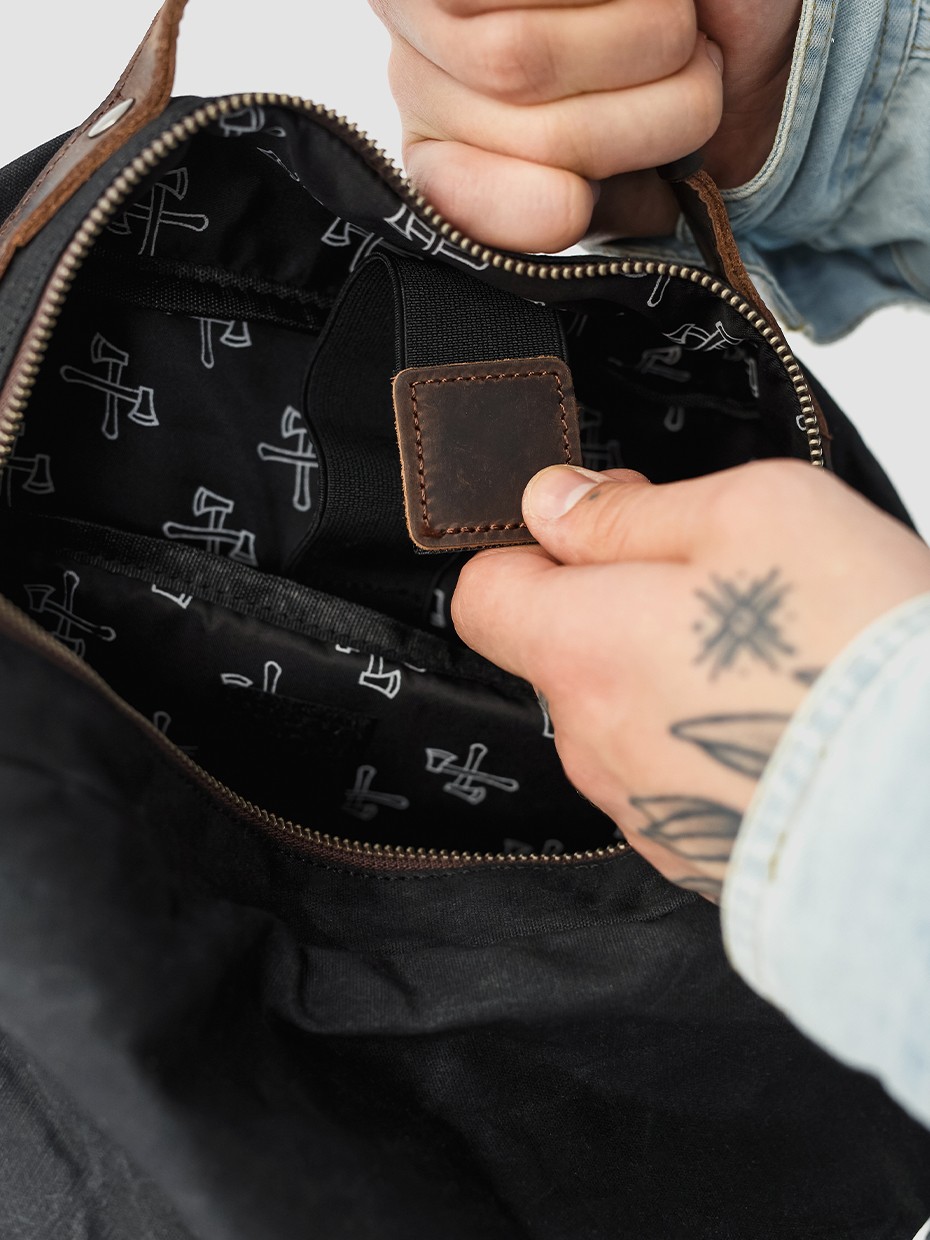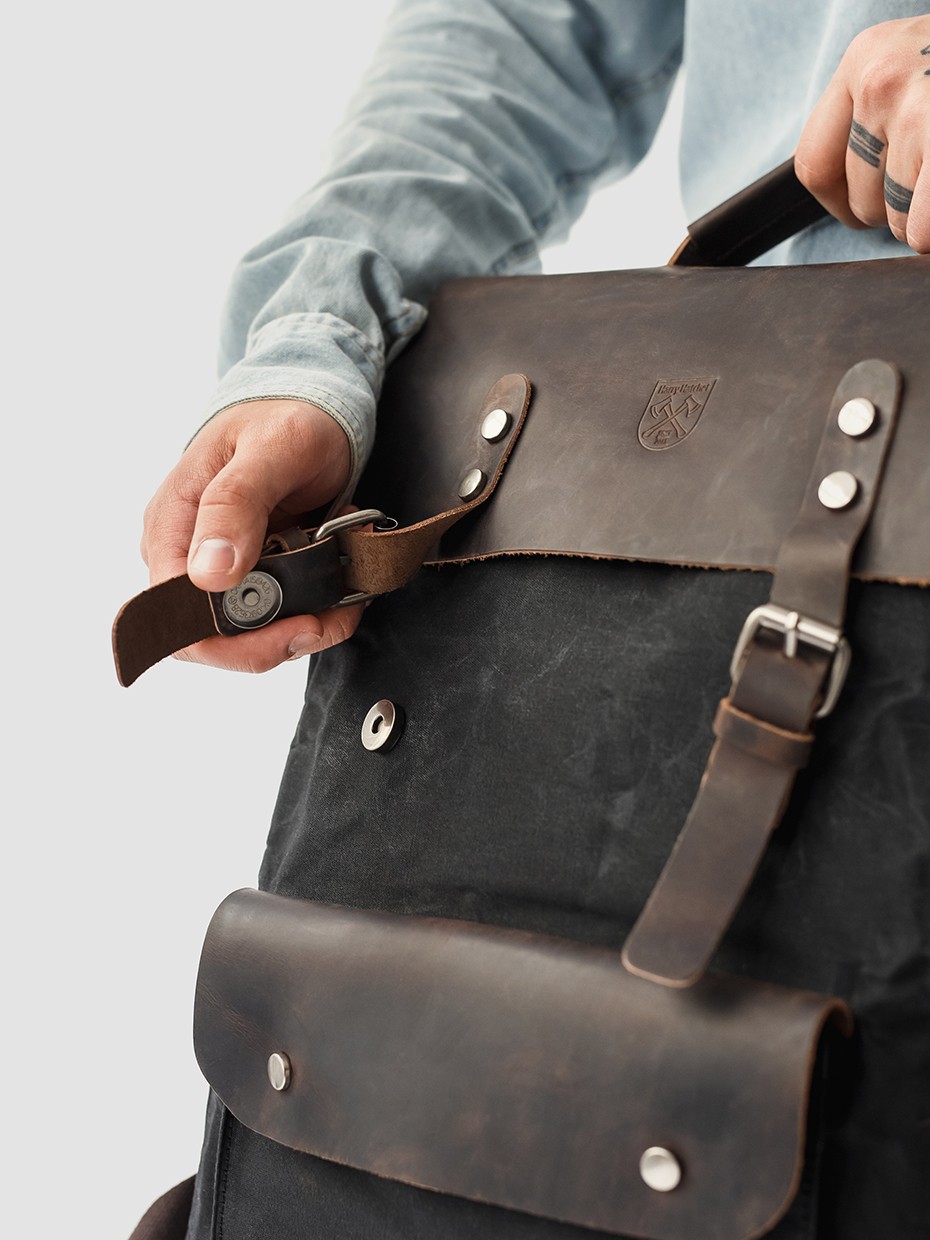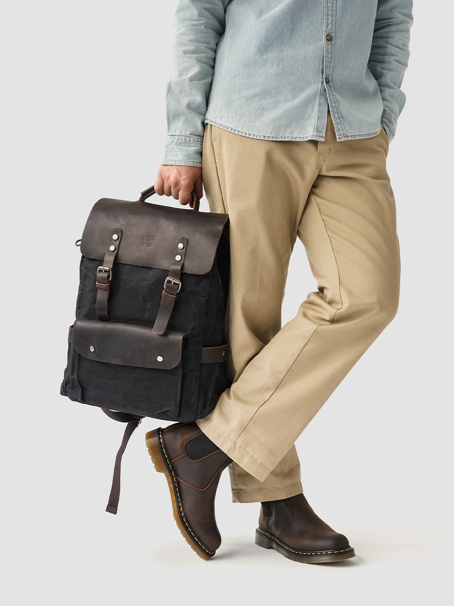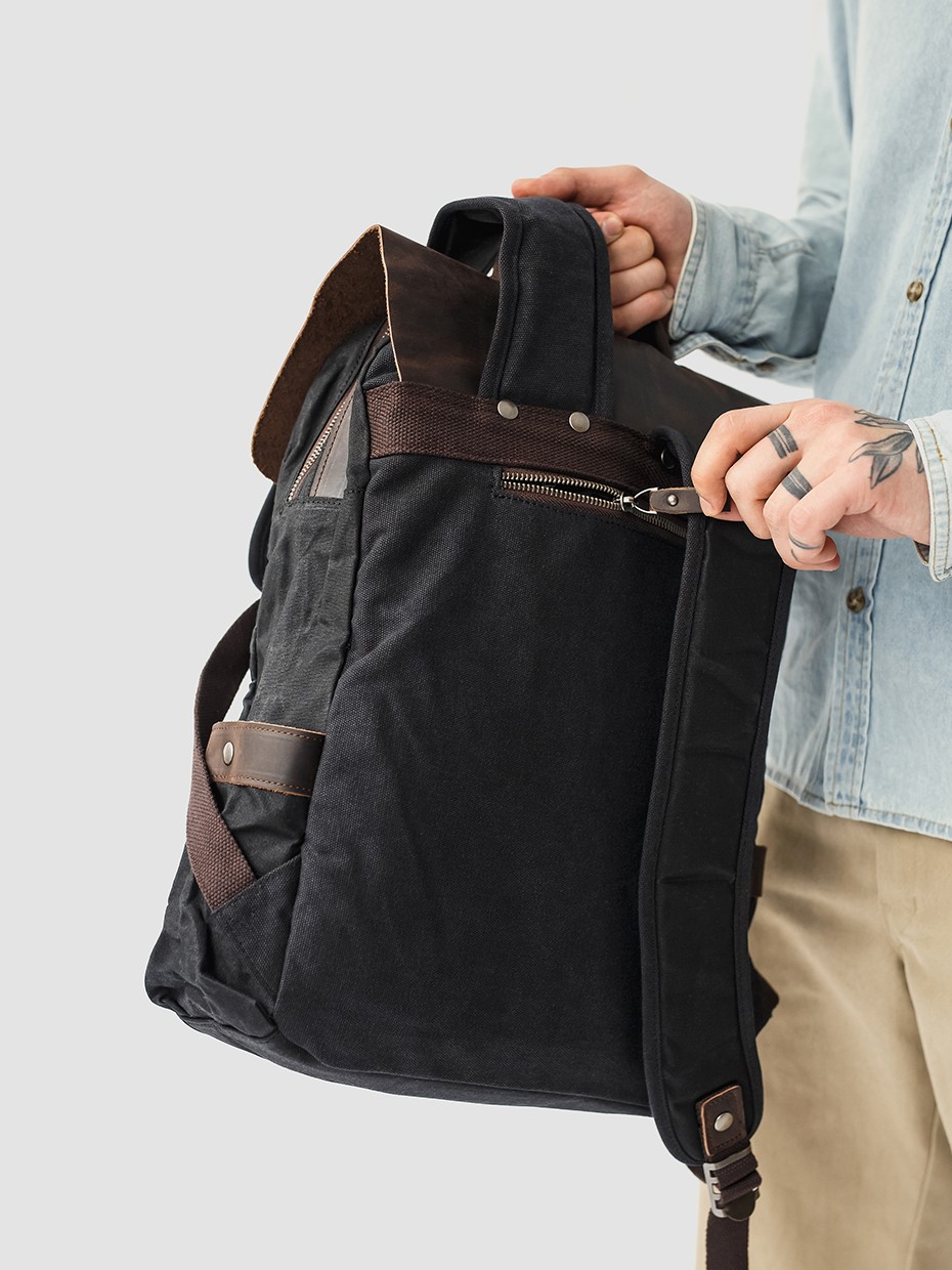 Рюкзак 8064-1. Рюкзак выполнен из натуральной кожи и высококачественного вощеного хлопка. Рюкзак  устойчив к выгоранию на солнце и имеет много дополнительного места для хранения. Влагостойкий портфель оснащен наружными карманами, регулируемыми ремнями и металлической молнией. Большое и вместительное основное отделение. Внутри дополнительный карман для ноутбука до 15 дюймов. Два маленьких отделения внутри. Небольшой карман-органайзер с клапаном из натуральной кожи на магнитах в передней части рюкзака. Два боковых кармана на кнопках для бутылки или термокружки. Отдельный небольшой карман на спинке под паспорт или кошелек. Крышка-клапан с логотипом-тиснением на ремнях с магнитами. Брендированная подкладка. Предусмотрена ручка для переноски рюкзака в руках (например, в транспорте). Высокое качество материалов делает изделие долговечным, а следы износа и естественное старение кожи придает рюкзаку уникальный винтажный вид.