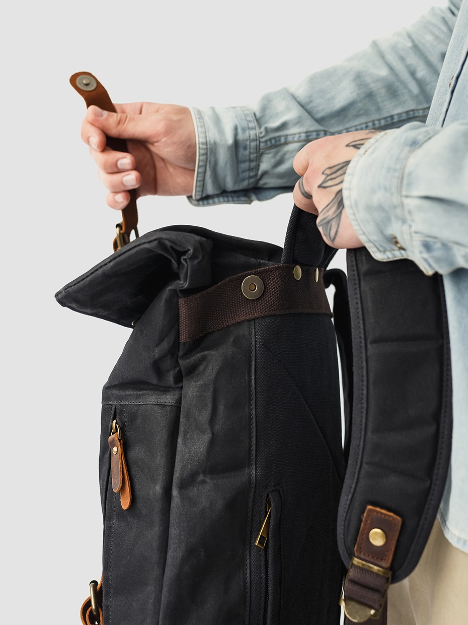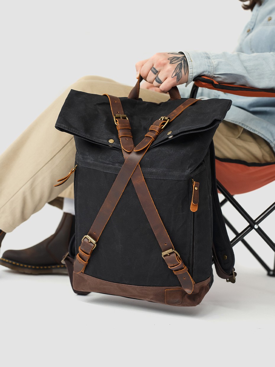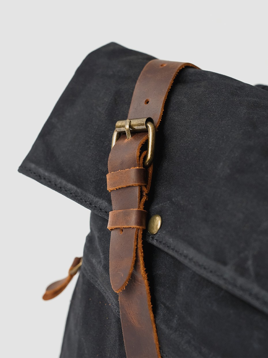 Рюкзак 9505. Рюкзак выполнен из натуральной кожи и высококачественного вощеного хлопка. Рюкзак  устойчив к выгоранию на солнце и имеет много дополнительного места для хранения. Влагостойкий портфель оснащен наружными карманами, регулируемыми ремнями и металлическими кнопками. Большое и вместительное основное отделение закрывается на магниты. Внутри рюкзака карман для ноутбука до 15 дюймов. 3 кармана внутри основного отделения – два маленьких и дополнительный на молнии. Два небольших кармана на молнии в передней части рюкзака. Отдельный небольшой карман на спинке под паспорт или кошелек. В нижней части рюкзака кожаный логотип с тиснением. Брендированная подкладка. Высокое качество материалов делает изделие долговечным, а следы износа и естественное старение кожи придает рюкзаку уникальный винтажный вид.