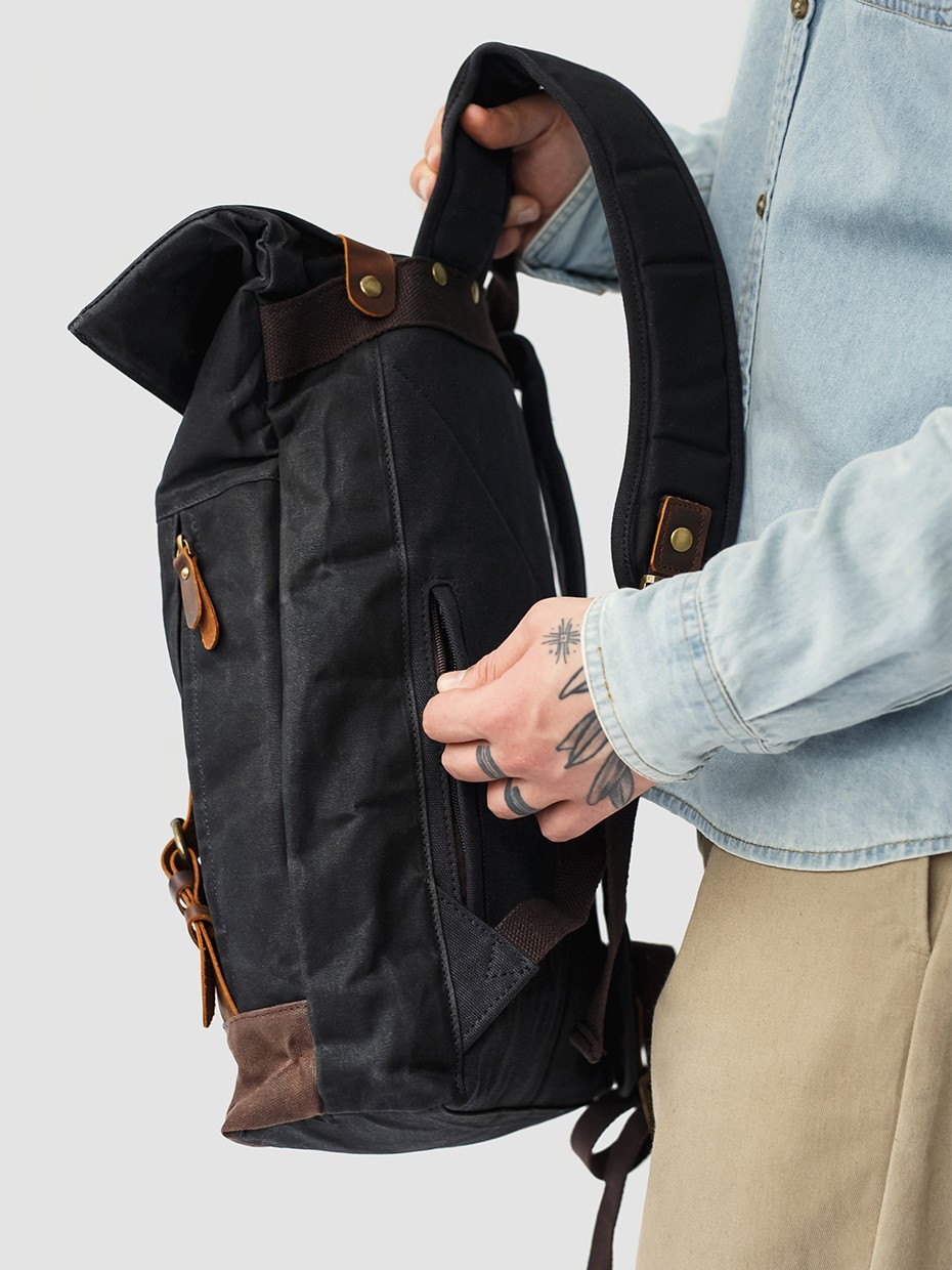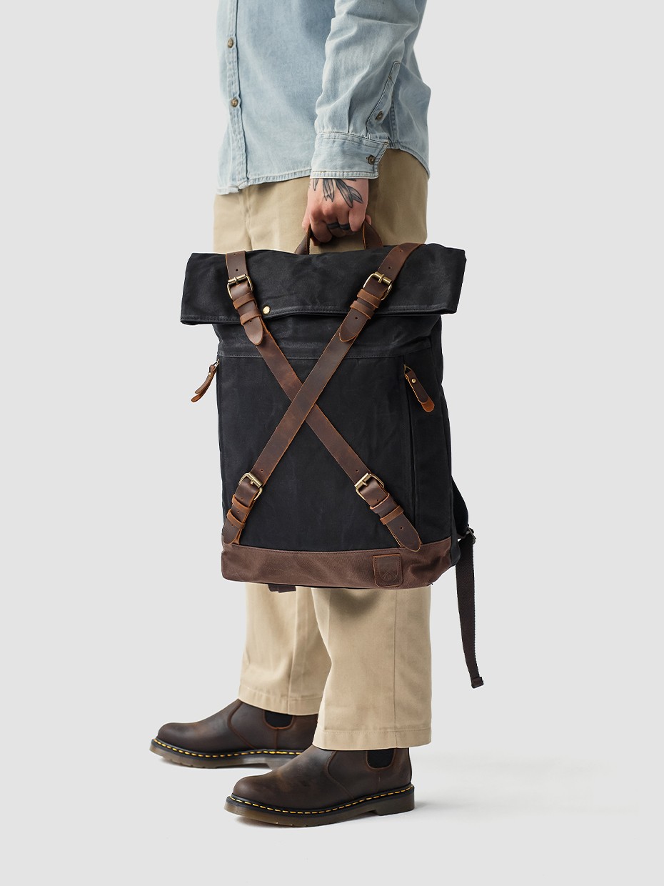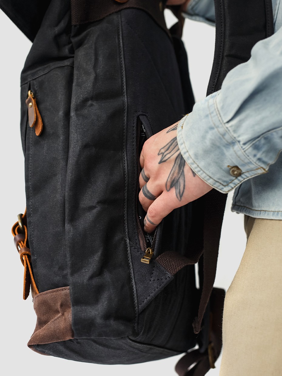Рюкзак 9505. Рюкзак выполнен из натуральной кожи и высококачественного вощеного хлопка. Рюкзак  устойчив к выгоранию на солнце и имеет много дополнительного места для хранения. Влагостойкий портфель оснащен наружными карманами, регулируемыми ремнями и металлическими кнопками. Большое и вместительное основное отделение закрывается на магниты. Внутри рюкзака карман для ноутбука до 15 дюймов. 3 кармана внутри основного отделения – два маленьких и дополнительный на молнии. Два небольших кармана на молнии в передней части рюкзака. Отдельный небольшой карман на спинке под паспорт или кошелек. В нижней части рюкзака кожаный логотип с тиснением. Брендированная подкладка. Высокое качество материалов делает изделие долговечным, а следы износа и естественное старение кожи придает рюкзаку уникальный винтажный вид.