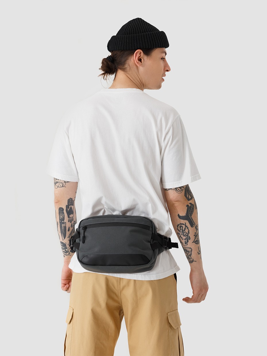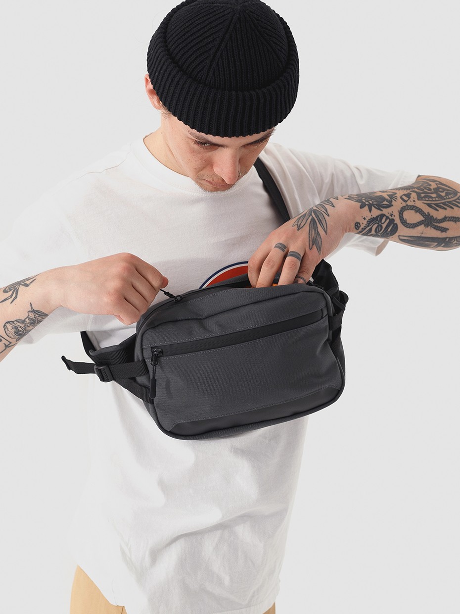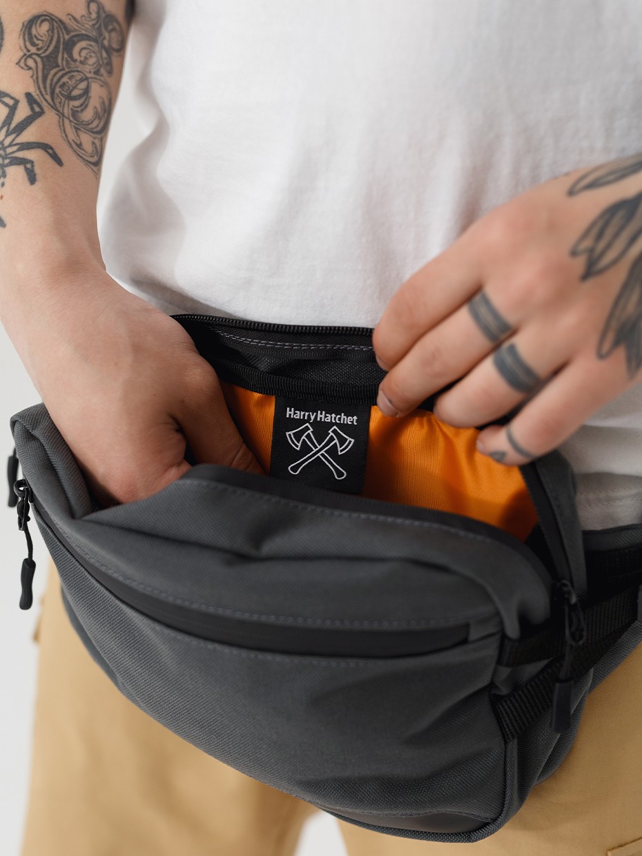 Поясная сумка B018 среднего размера. Компактная сумка на каждый день. Данная сумка отличный вариант для того, чтобы разгрузить карманы, так как вмещает все самое необходимое: телефон, кошелек, документы и прочее. Главное отделение закрывается на прорезиненную молнию, что позволяет надежно хранить все ваши документы, телефон, ключи и другие мелочи. Внутри основного отделения есть два дополнительных кармана. Боковые ремни для регулировки внутреннего объема. Сумка выполнена с использованием износостойких материалов и фурнитуры. Особое переплетение волокон и ПУ пропитка с внутренней стороны, удерживают грязь и влагу между нитями внутри структуры и не позволят испортить ваши вещи внутри.  Передний карман упрощает доступ к самым необходимым вещам. Регулируемый ремень с фастексом. Брендированная резиновая нашивка на лицевой стороне.