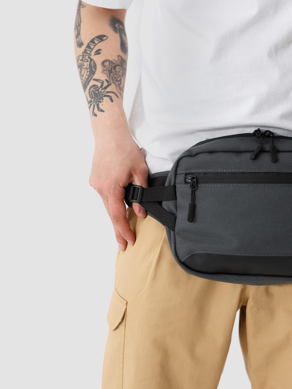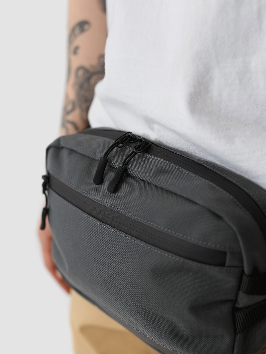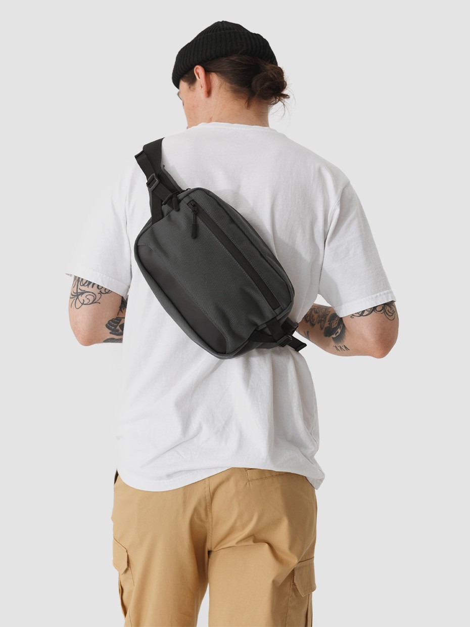 Поясная сумка B018 среднего размера. Компактная сумка на каждый день. Данная сумка отличный вариант для того, чтобы разгрузить карманы, так как вмещает все самое необходимое: телефон, кошелек, документы и прочее. Главное отделение закрывается на прорезиненную молнию, что позволяет надежно хранить все ваши документы, телефон, ключи и другие мелочи. Внутри основного отделения есть два дополнительных кармана. Боковые ремни для регулировки внутреннего объема. Сумка выполнена с использованием износостойких материалов и фурнитуры. Особое переплетение волокон и ПУ пропитка с внутренней стороны, удерживают грязь и влагу между нитями внутри структуры и не позволят испортить ваши вещи внутри.  Передний карман упрощает доступ к самым необходимым вещам. Регулируемый ремень с фастексом. Брендированная резиновая нашивка на лицевой стороне.