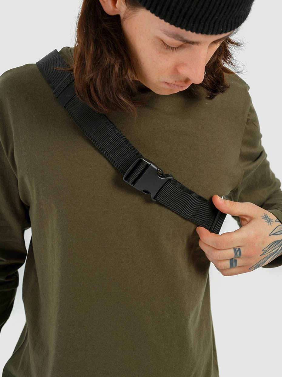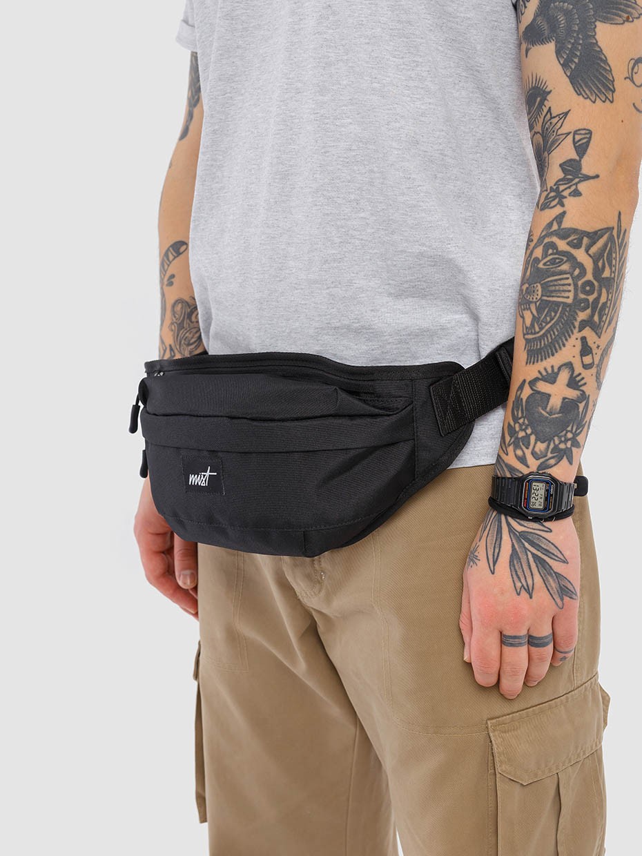 Поясная сумка B03 среднего размера. Компактная сумка на каждый день. Данная сумка отличный вариант для того, чтобы разгрузить карманы, так как вмещает все самое необходимое: телефон, кошелек, документы и прочее. Модель сделана с использованием износостойких материалов и фурнитуры. Два отделения на молнии: большое переднее и дополнительное у спинки, что позволяет надежно хранить все ваши вещи. Специальная ПУ пропитка с внутренней стороны ткани защищает содержимое сумки от попадания влаги. Также для повышения влагостойкости молния основного отделения закрыта дополнительной планкой. Спинка сумки выполнена из объемной сетки со специальным уплотнителем. Регулируемый ремень с фастексом. Брендированная нашивка на лицевой стороне.